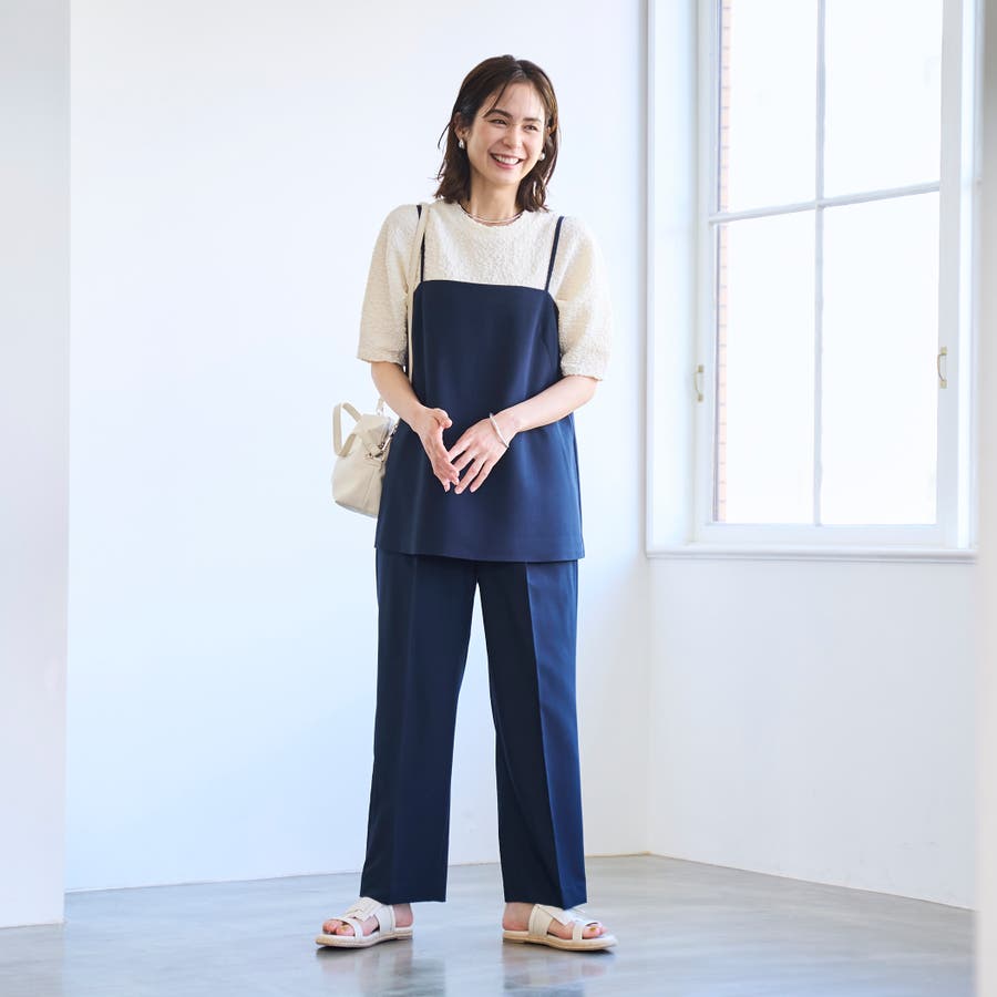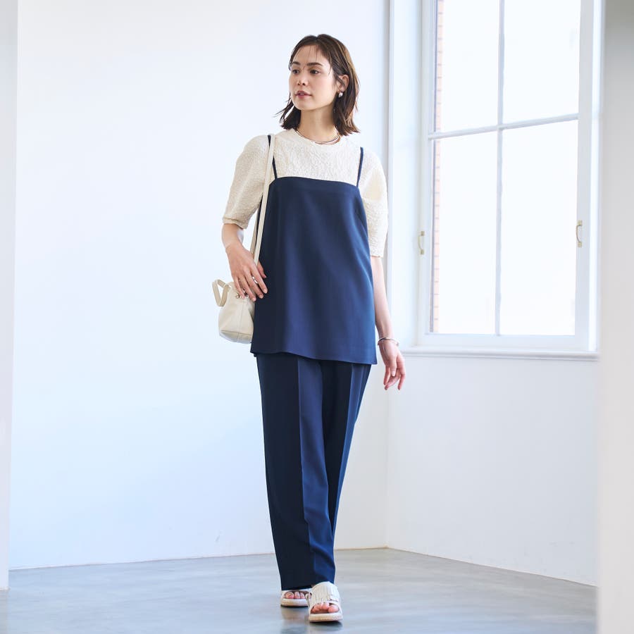 ジャケットやベスト、キャミトップスなどとのレイヤードスタイルもおススメ。
