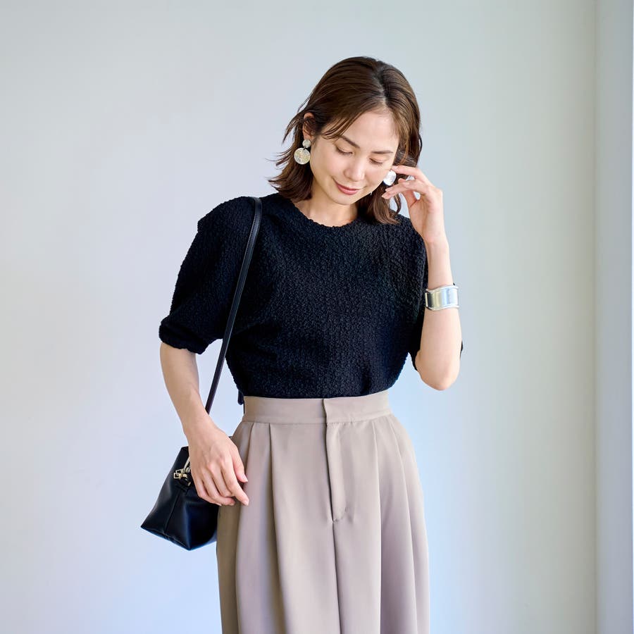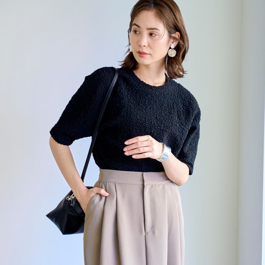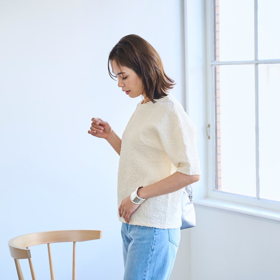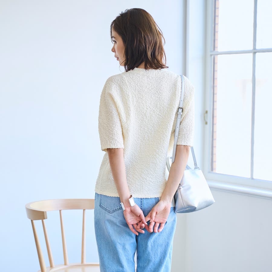 ポコポコしたジャガードのジャージー素材で仕上げたカットソー。