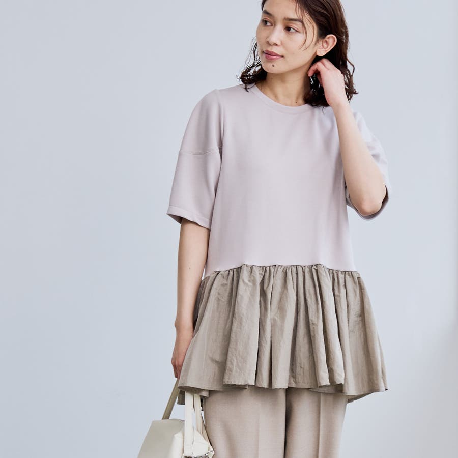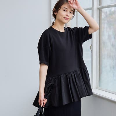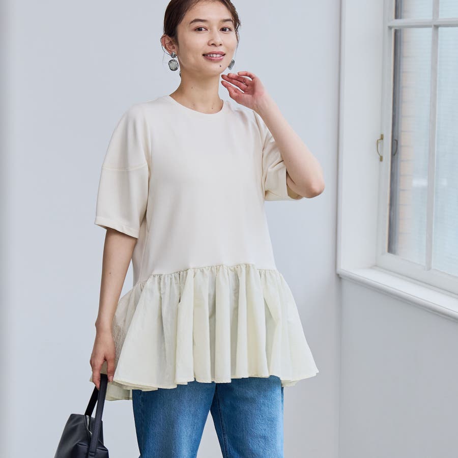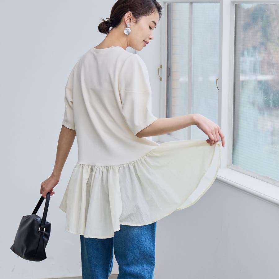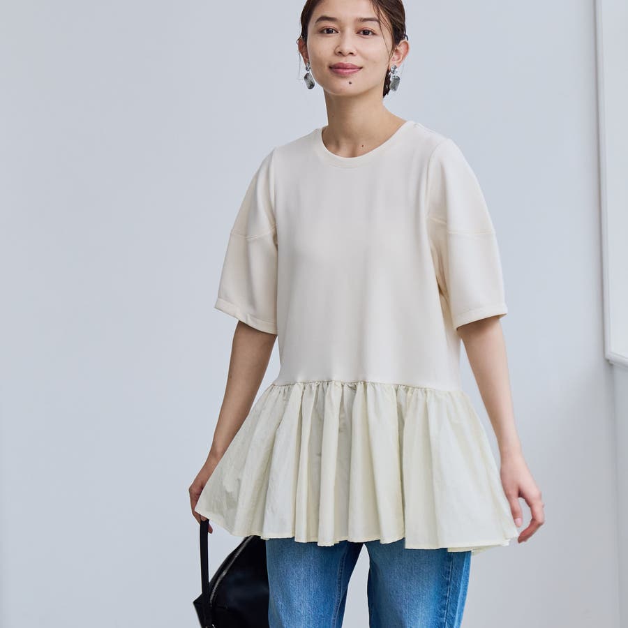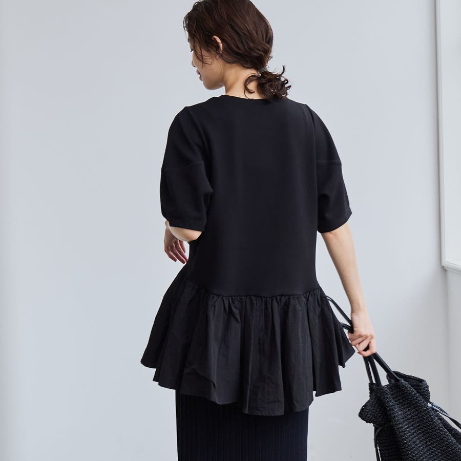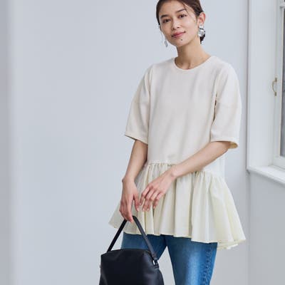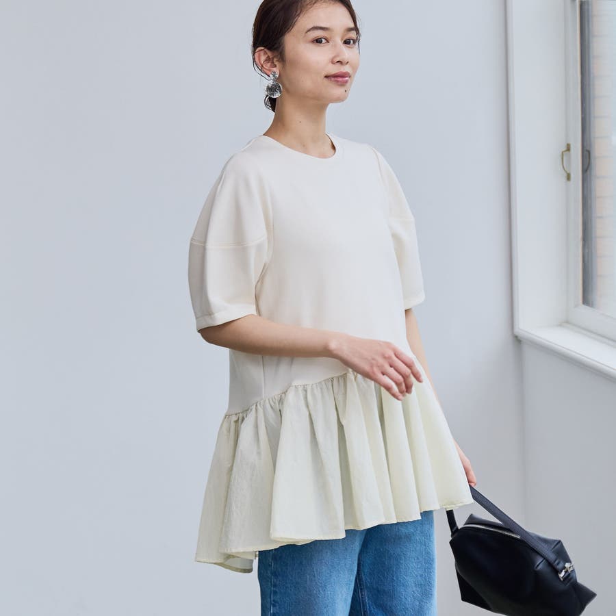 【BEIGE】【RONEL】クリアポンチ異素材ドッキングペプラムカットソー