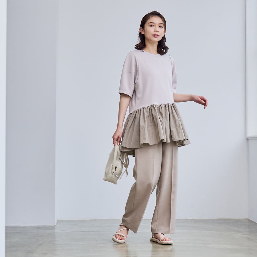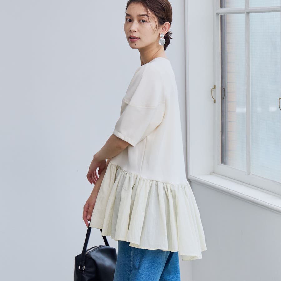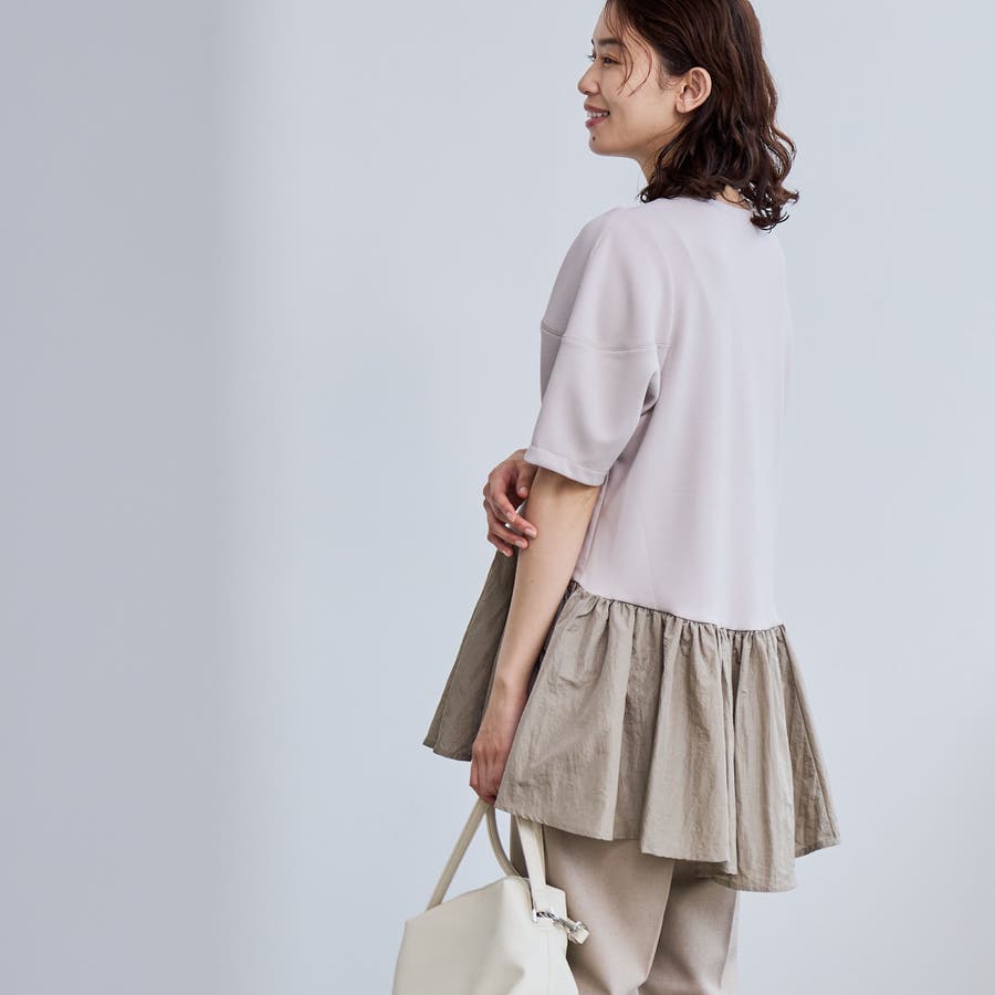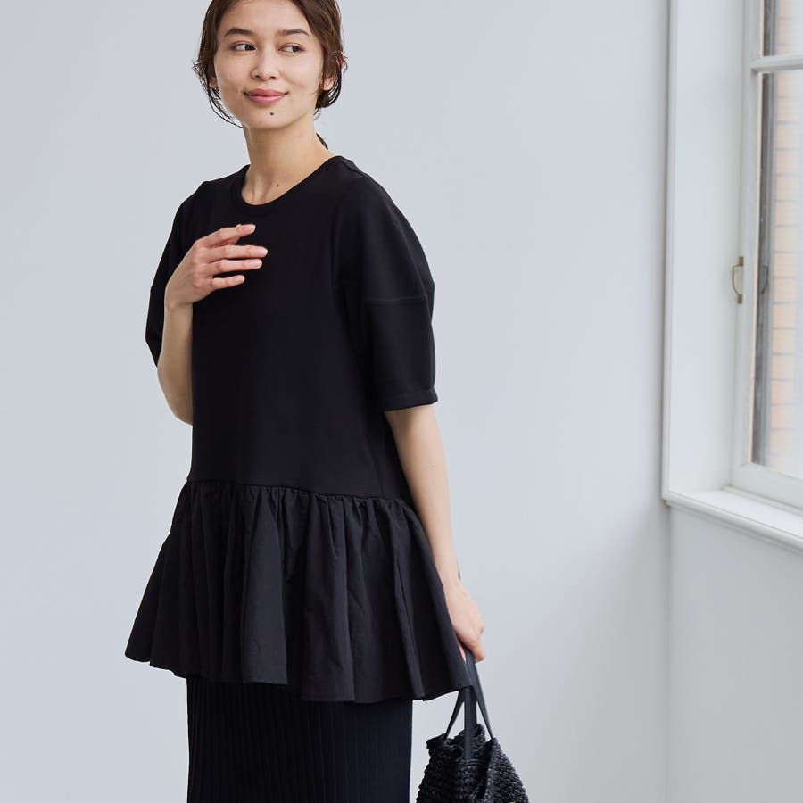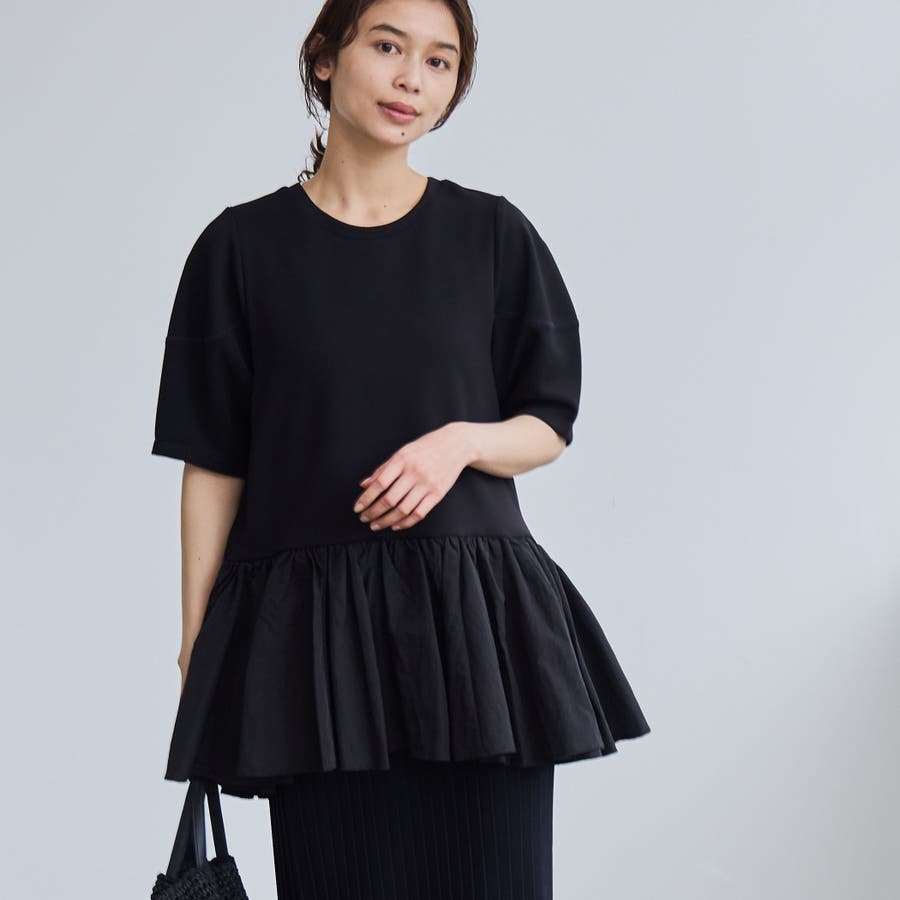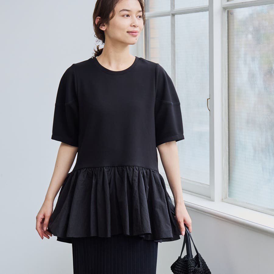 【BEIGE】【RONEL】クリアポンチ異素材ドッキングペプラムカットソー
