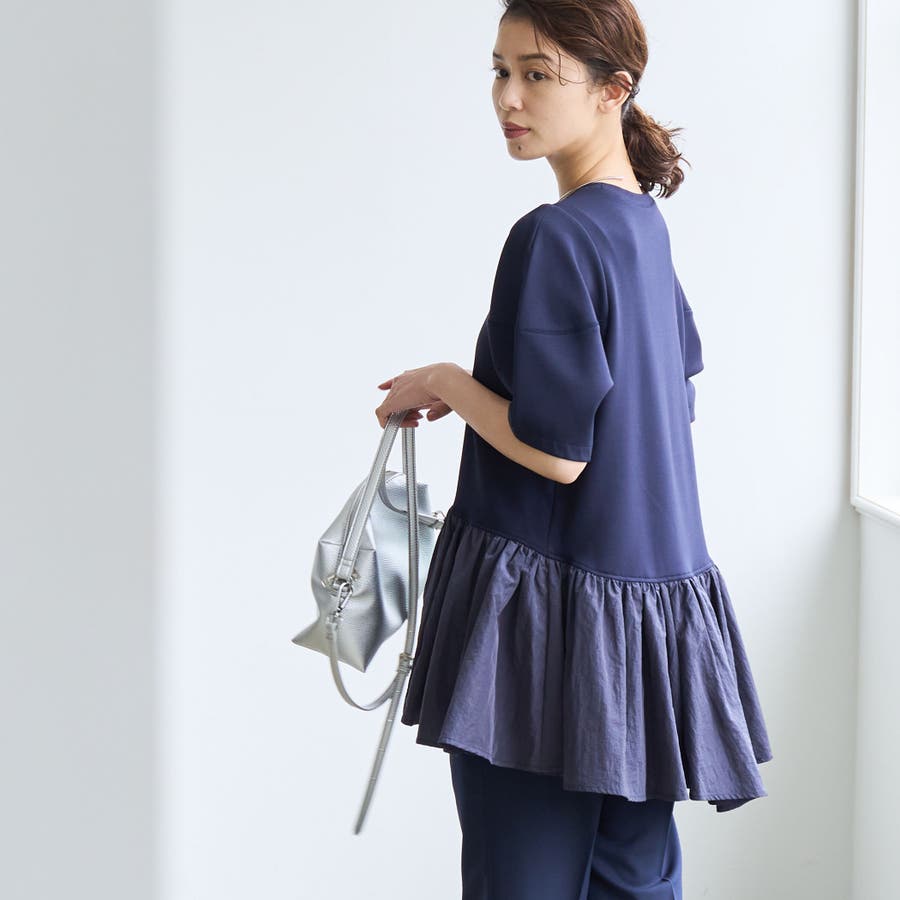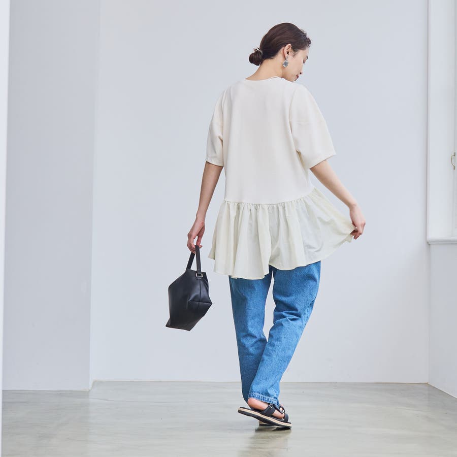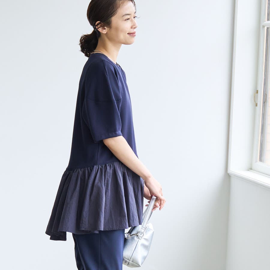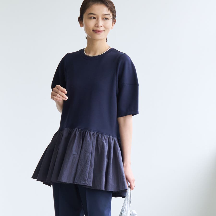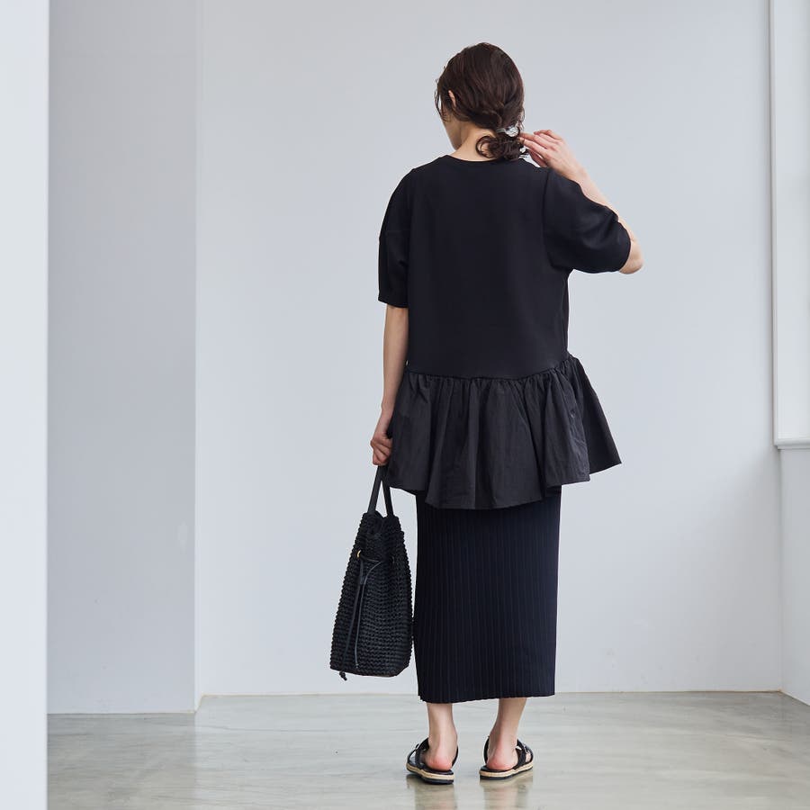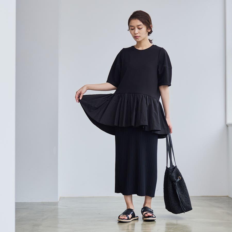 【BEIGE】【RONEL】クリアポンチ異素材ドッキングペプラムカットソー