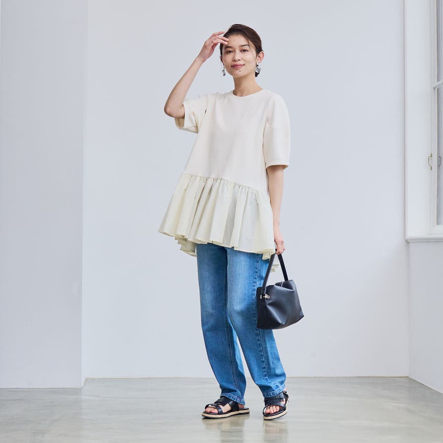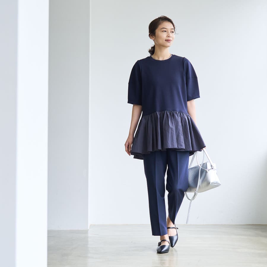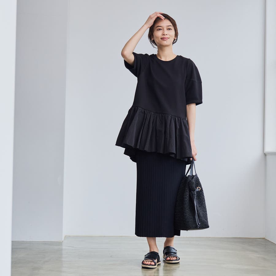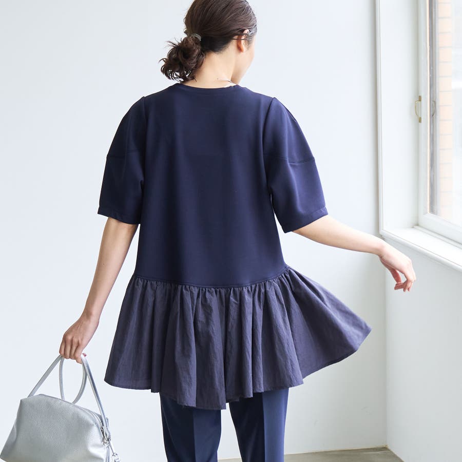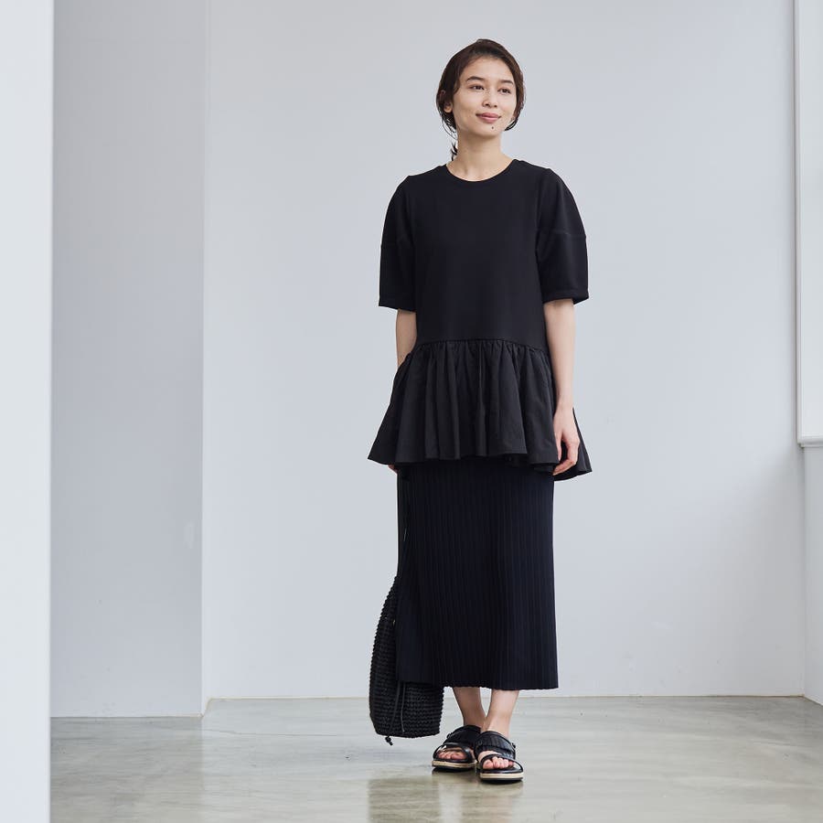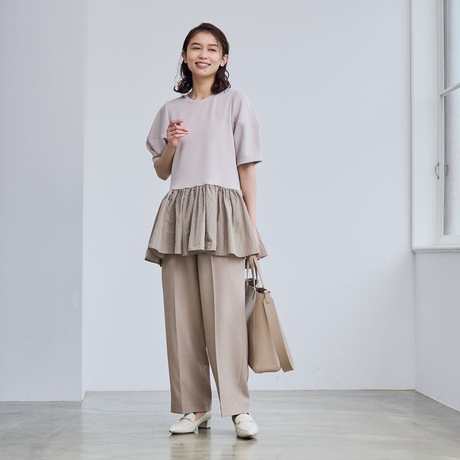 【BEIGE】【RONEL】クリアポンチ異素材ドッキングペプラムカットソー