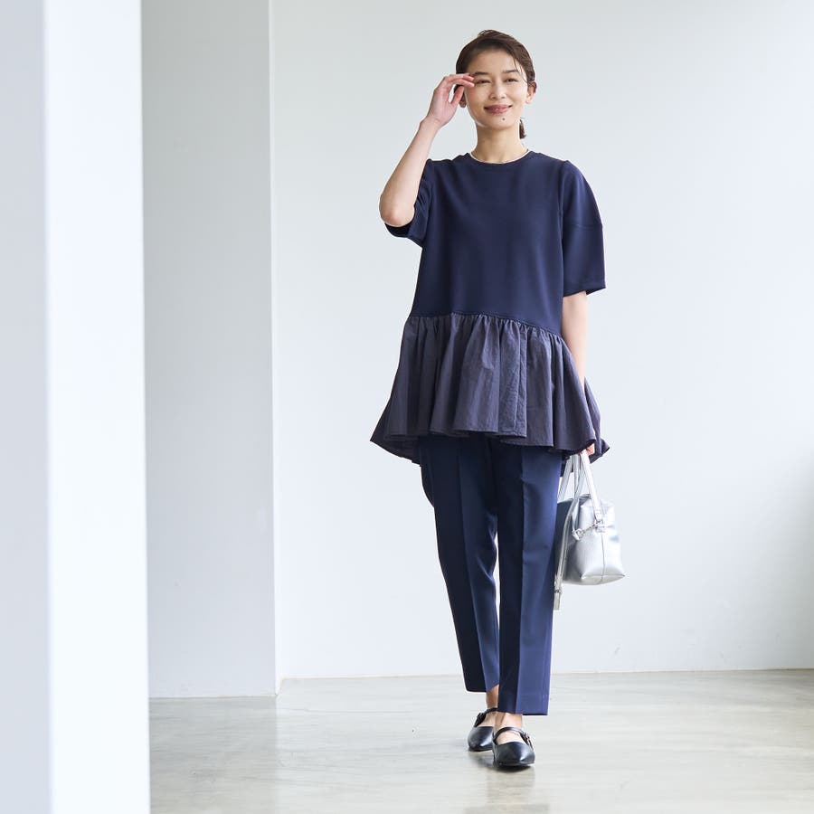 程よい落ち感と伸び感が特徴のポンチ素材を使用。