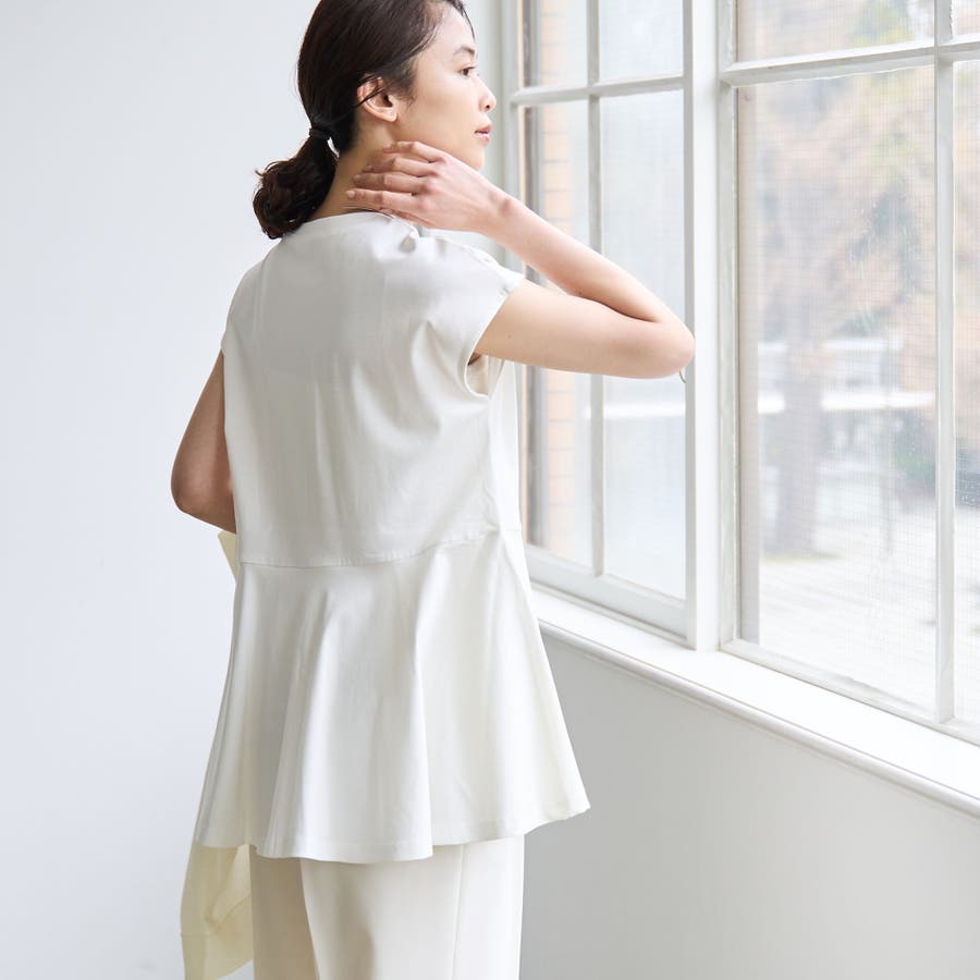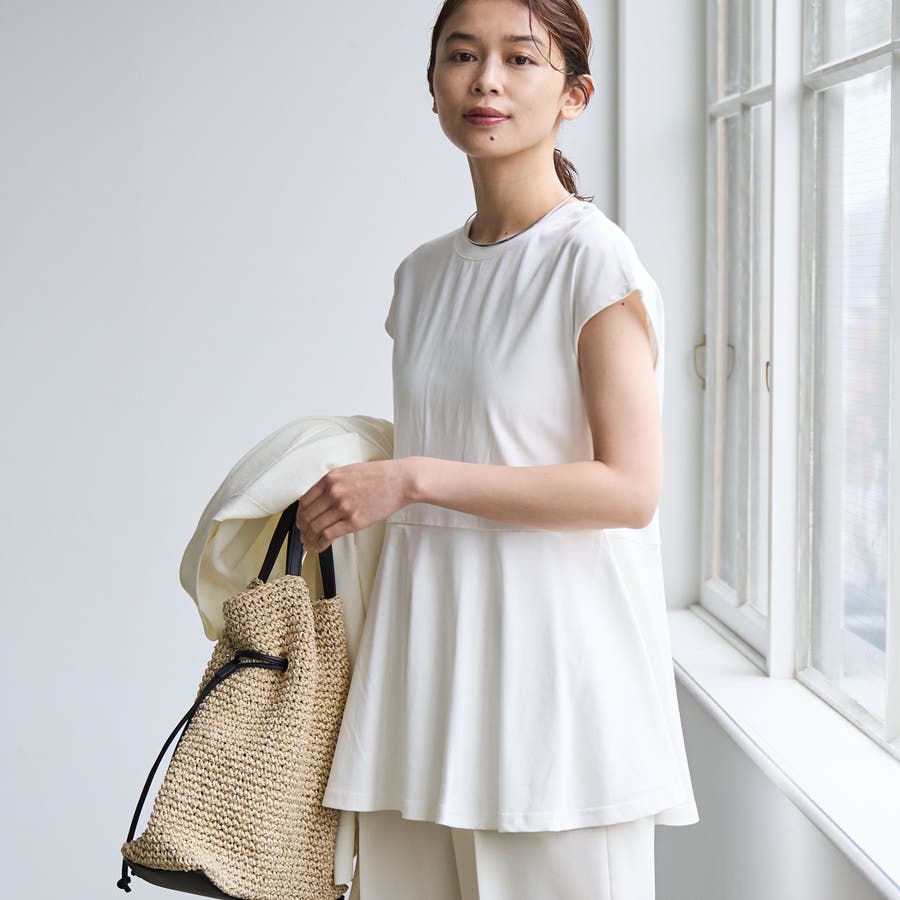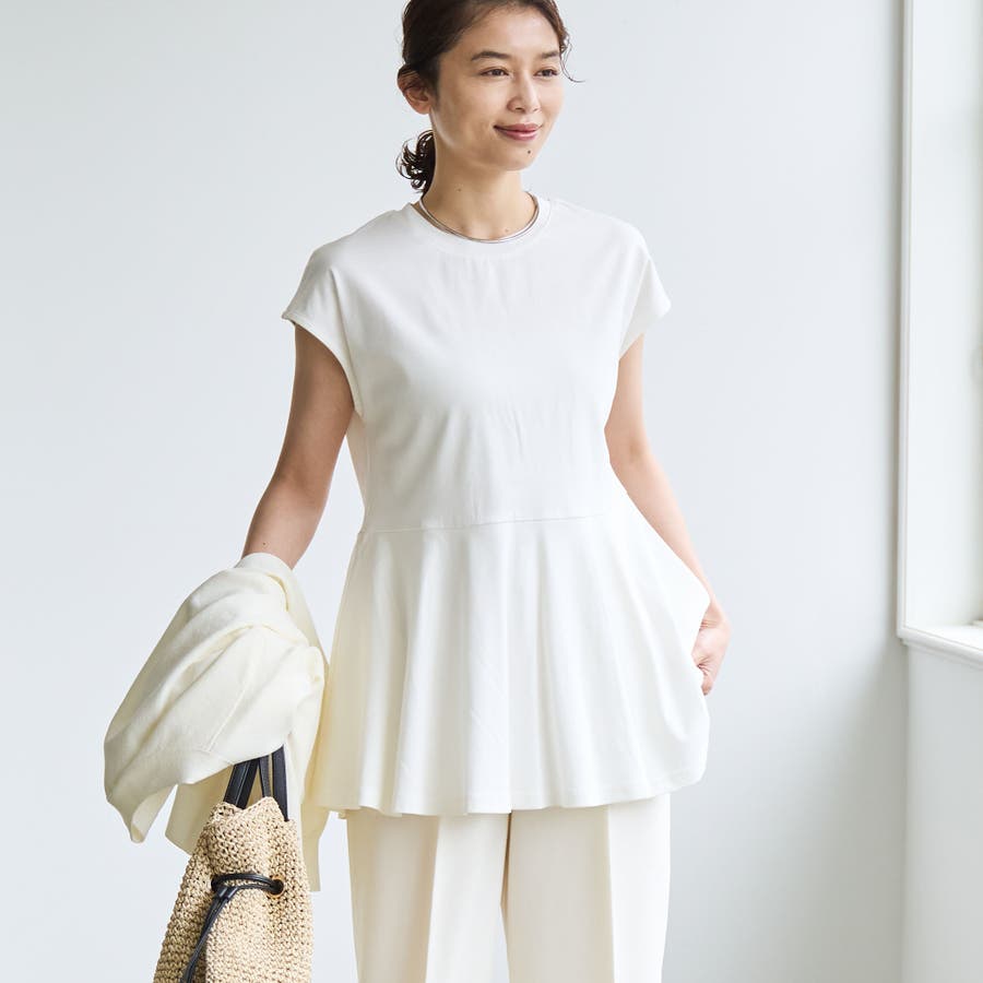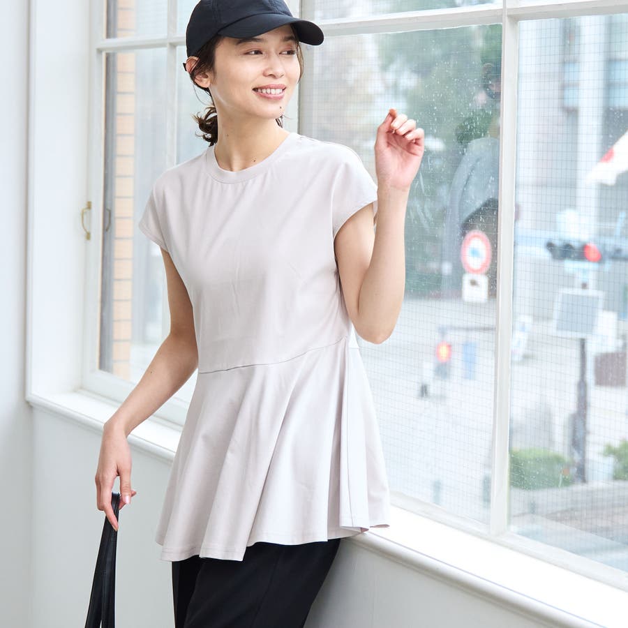 ふわりとしたペプラムの切り替えが女性らしい印象のカットソー