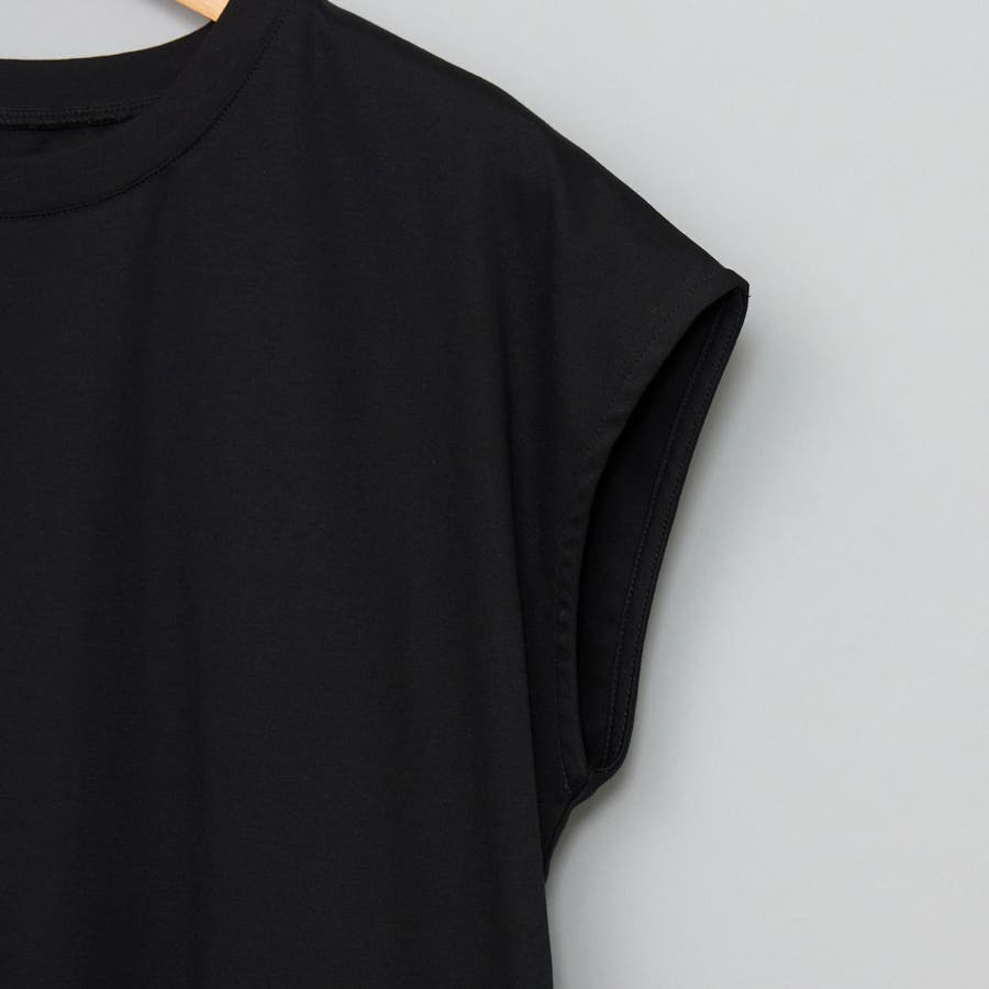 首回りはすっきり見えするクルーネックでデザインし、着やすく仕上げています。