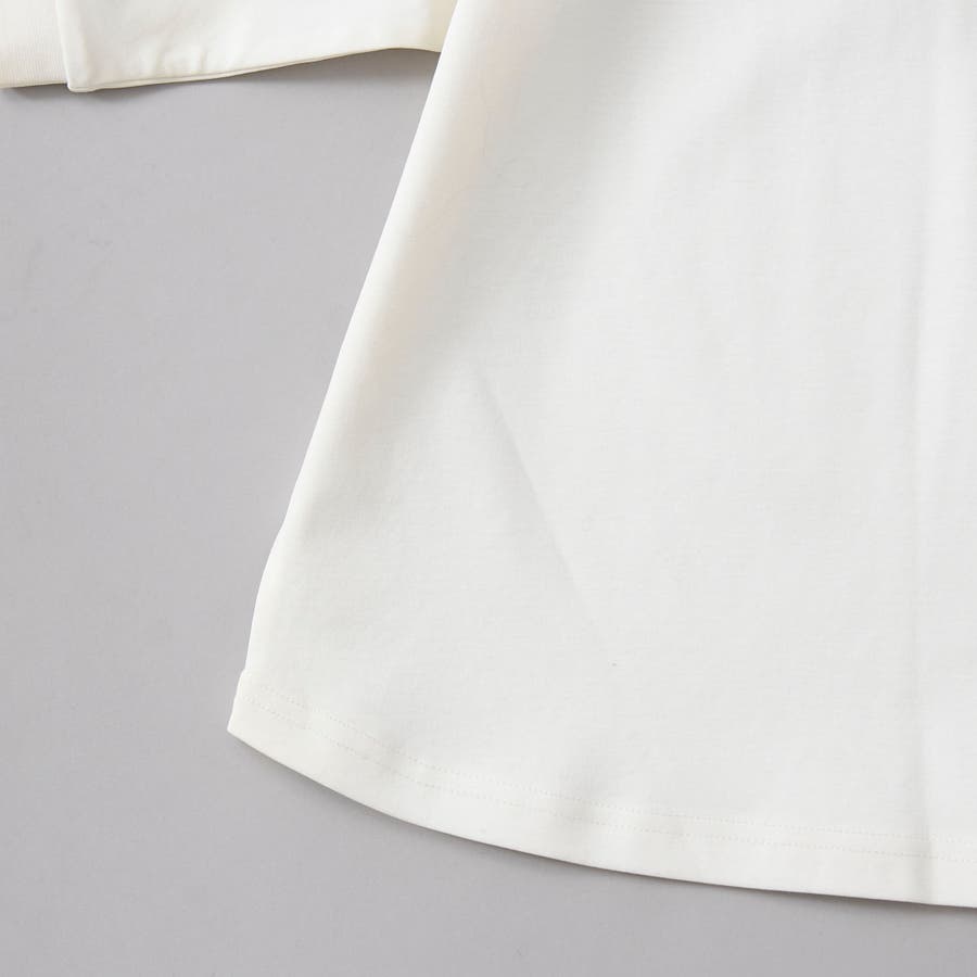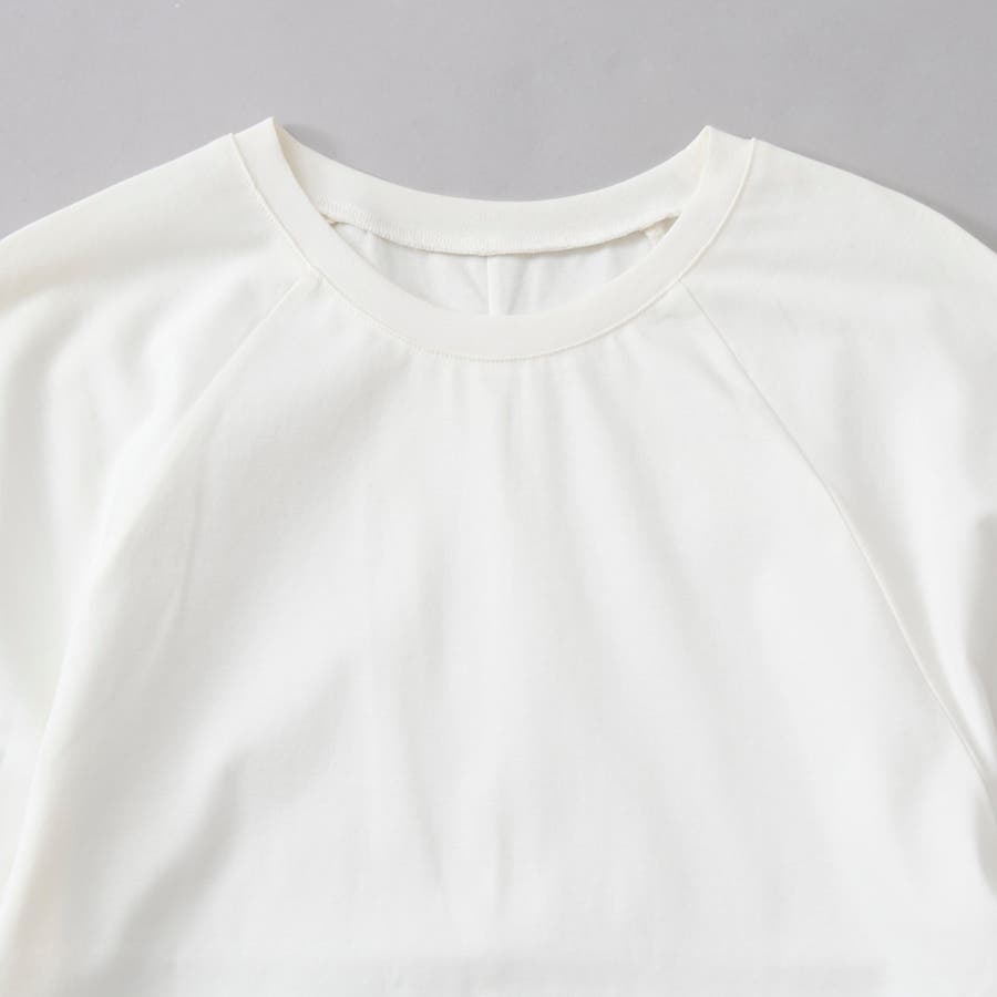 首回りはすっきり見えするクルーネックでデザインし、着やすく仕上げています。
