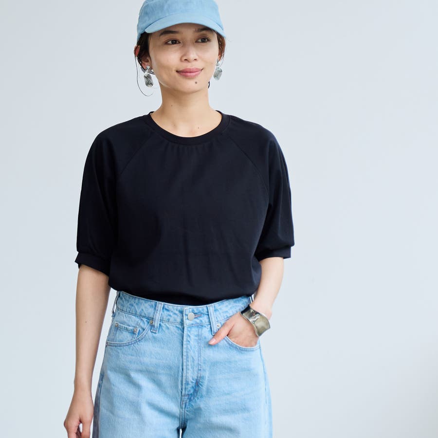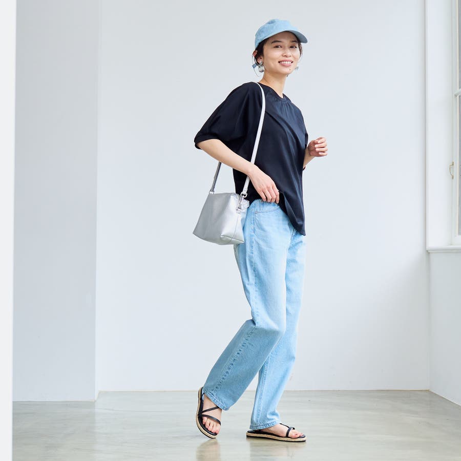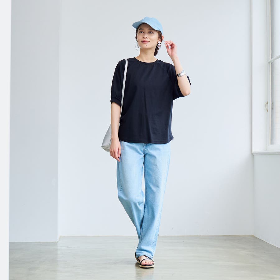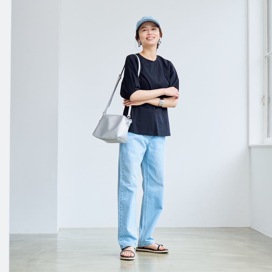 コンパクトな丈感のカットソーなので、どんなパンツとも相性◎