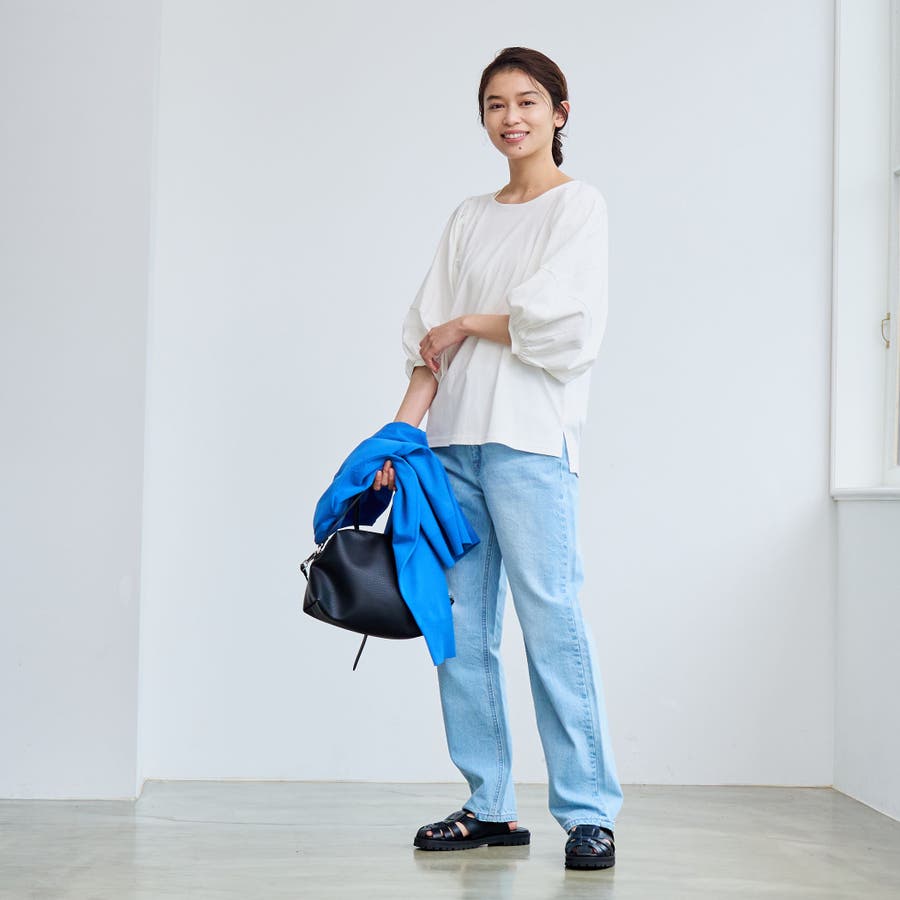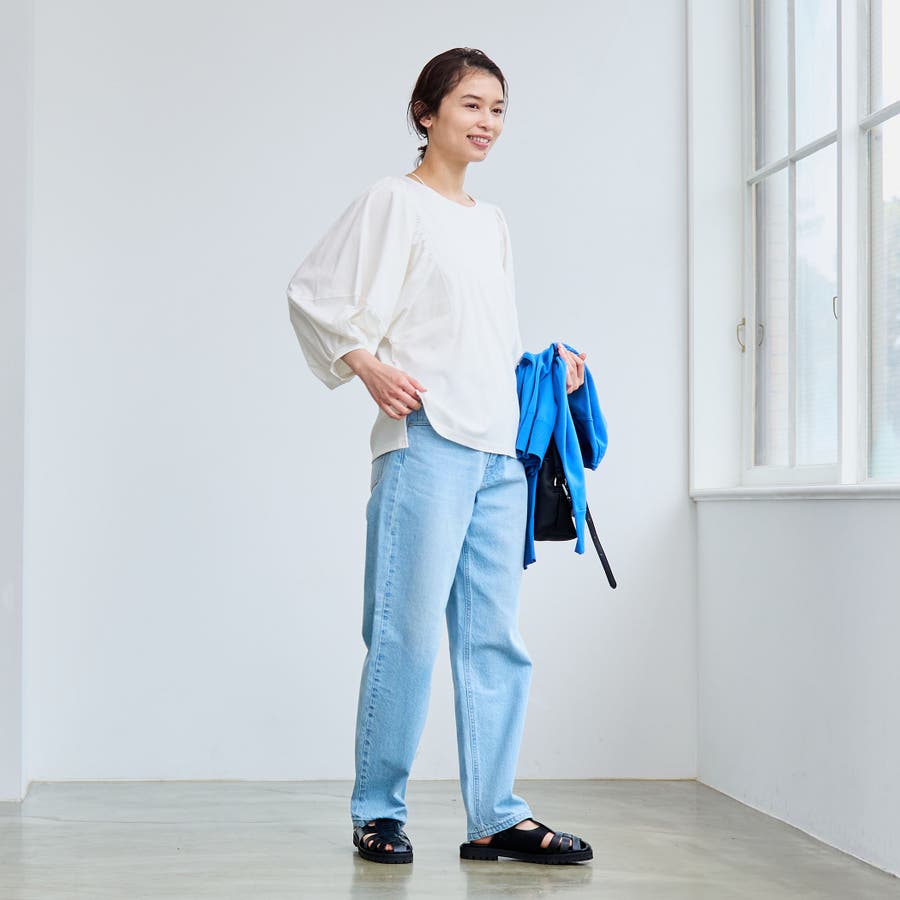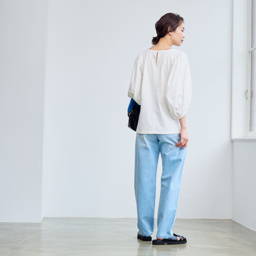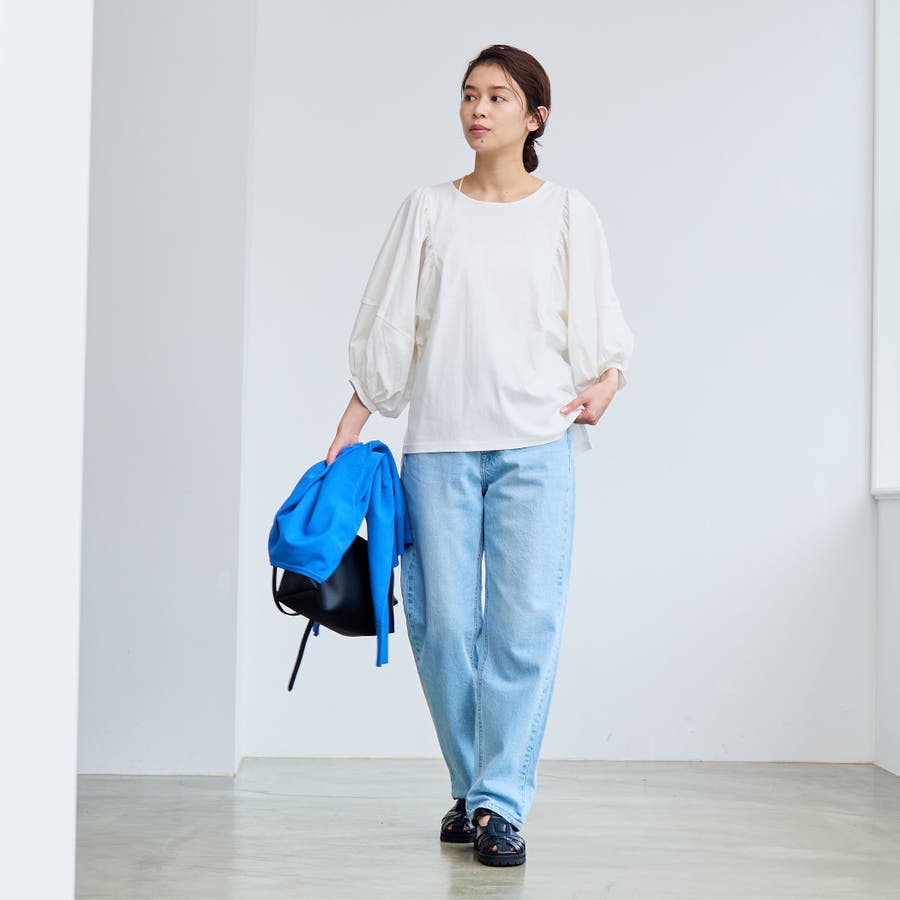ボリュームスリーブがポイントなのでボトム選びはスッキリしたパンツ合わせがオススメです。