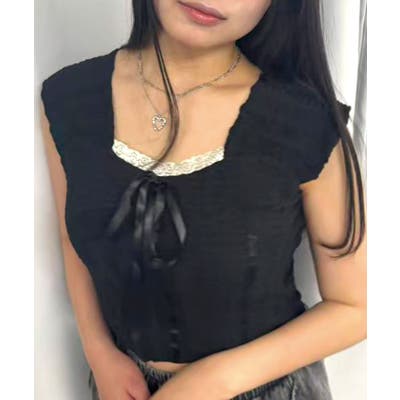 リボンレースノースリーブトップス