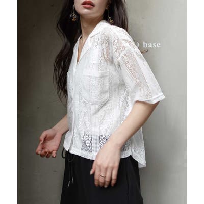 レースオープンカラー半袖シャツ