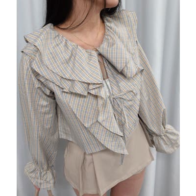 チェックラッフルカラーブラウス
