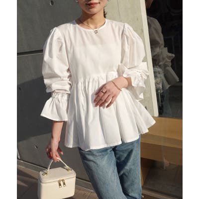 ブロードペプラムギャザーブラウス