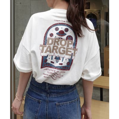 シンプルで着回し力の高い一枚。広めにプリントされているので、シャツやカーディガンを羽織ってもTシャツが埋もれない。