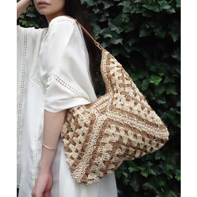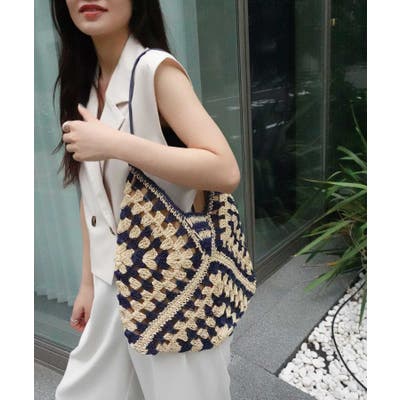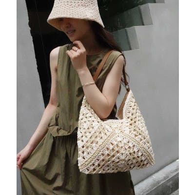 大きめの編み柄と存在感のあるサイズで、コーデをリゾートムードにアップデート