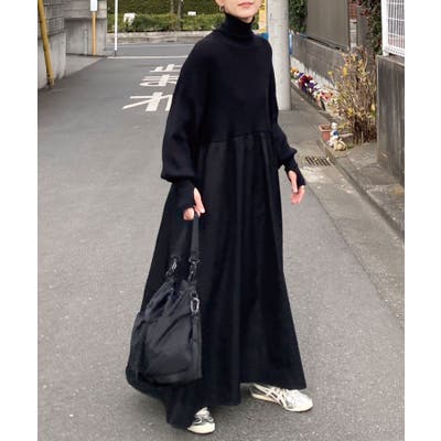 異素材切替のドッキングデザインで1枚で着映えするワンピースです。