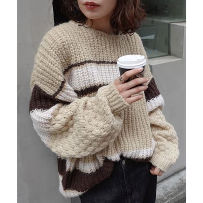 マルチボーダーポコポコ袖ニットは、鮮やかなカラーリングと可愛らしいデザインで、秋冬コーデを彩ります。