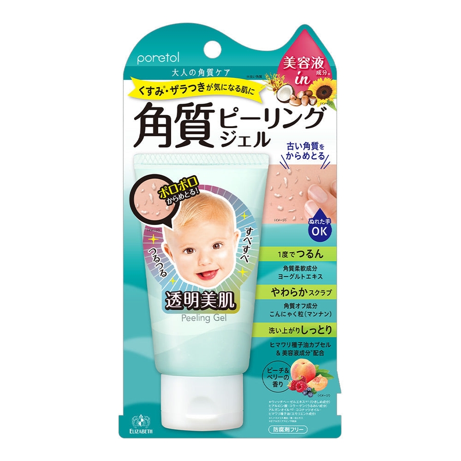 ●古い角質や皮脂汚れをやさしくオフして、なめらかな透明美肌に導く角質ピーリングジェル。●ジェルでやさしくマッサージすることで、ヨーグルトエキス(角質柔軟成分)が古い角質をやわらかくし、やわらかスクラブのこんにゃく粒(マンナン/角質オフ成分)が汚れをからめとります。●つっぱり感のない、しっとりとした洗い上がりです。●ピーチ&ベリーの香り。
