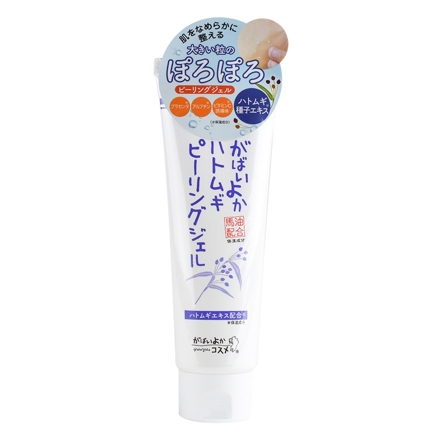 ハトムギエキス(※)配合の大きい粒のぽろぽろピーリングジェルです。やわらかく、使いやすいジェルで肌表面の汚れをからめ取ります。ハトムギ種子エキスやビタミンC誘導体、馬油など多くの保湿成分を配合しており、デコルテやひじ、くるぶしなど肌の気になる場所に使用してください。ピーリングに使いやすいワンタッチキャップを採用し、手を汚すことなくお使いいただけます。 ※保湿成分