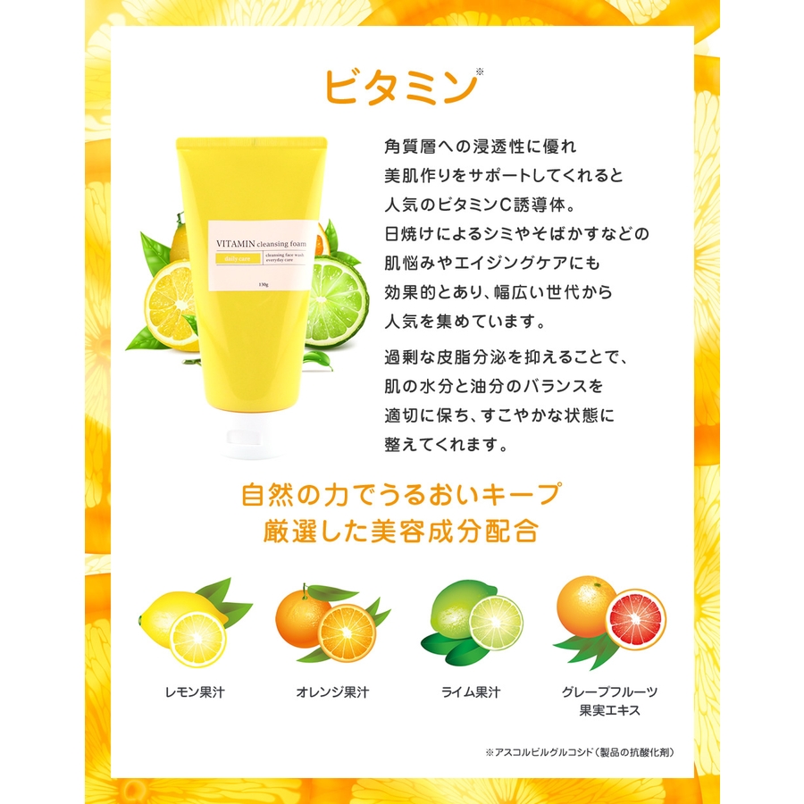 水、ミリスチン酸、PEG-150、グリセリン、ステアリン酸、水酸化K、ステアリン酸グリセリル、ラウリン酸、BG、アスコルビルグルコシド、レモン果汁、オレンジ果汁、ライム果汁、グレープフルーツ果実エキス、ナツメ果実エキス、リンゴ果実エキス、レモングラス葉/茎エキス、サンザシエキス、ローヤルゼリーエキス、ヒアルロン酸Na、水溶性コラーゲン、トコフェロール、乳酸Na、黄4