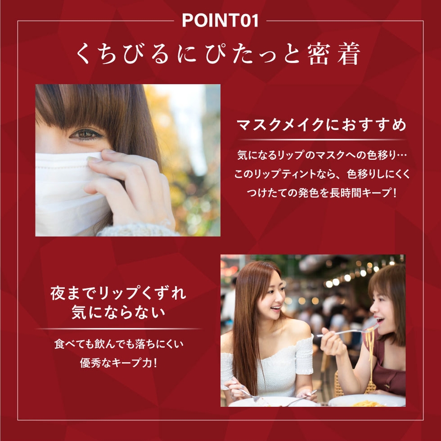 唇に密着して、マスクに付きにくい保湿成分配合のリップティント。