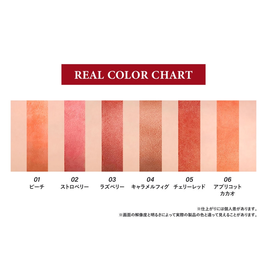 カラー | ピーチ / ストロベリー / ラズベリー / キャラメルフィグ / チェリーレッド / アプリコットカカオ |