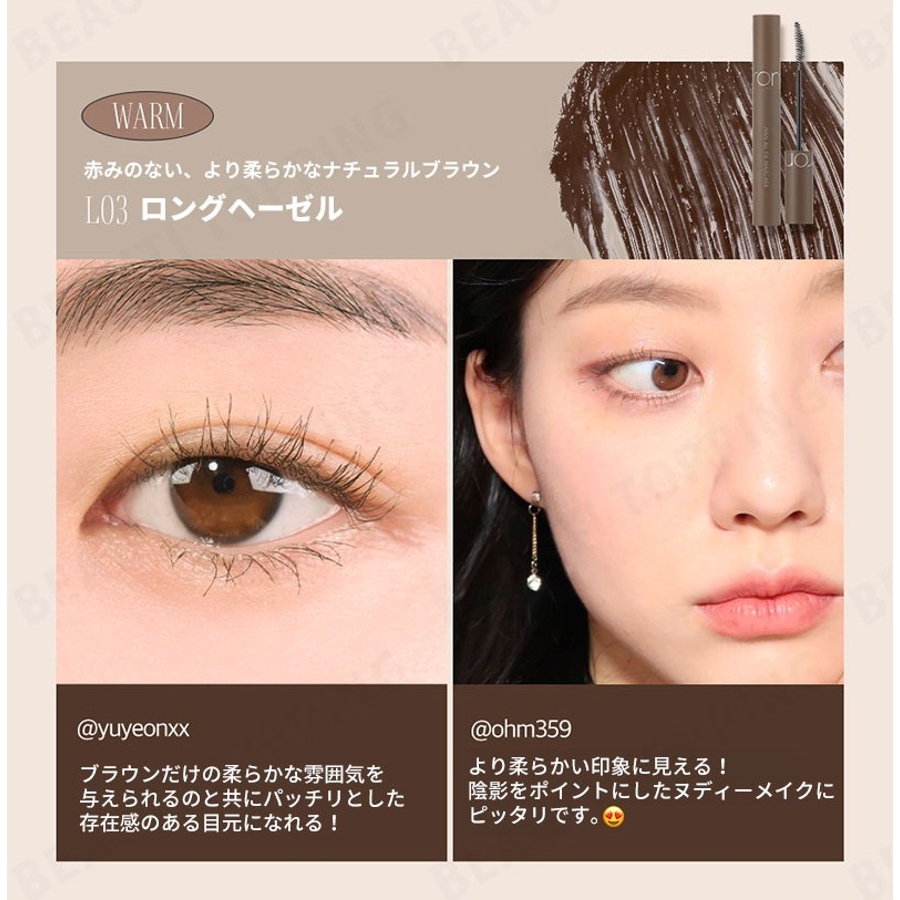 マスカラ ブラック ブラウン グレージュ チャコール まつ毛 ウォータープルーフ ロングマスカラ ボリュームマスカラ カール ロング ボリューム 抜け感 カラーマスカラ 伸びる 長い 落ちにくい 韓国コスメ 韓国 韓国ファッション 春 夏 秋 冬 10代 20代 30代 40代