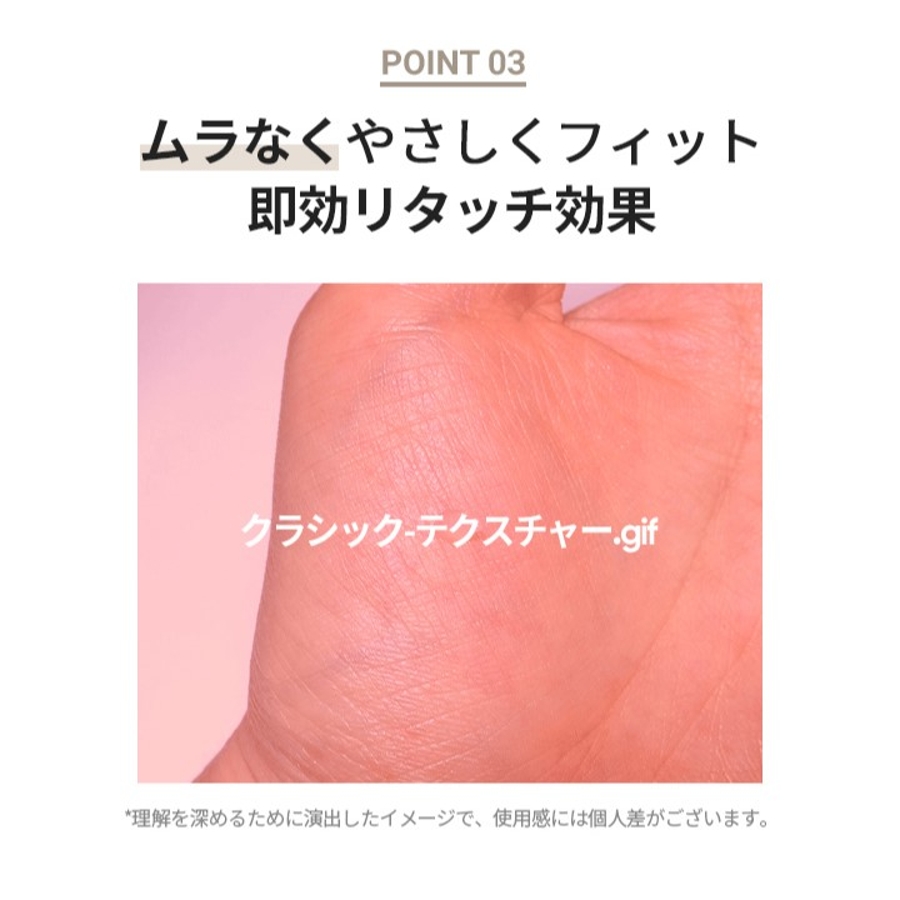 | 素材 | Classic set シリカ、ジメチコン、マカデミア種子油、(ジメチコン/ビニルジメチコン)クロスポリマー、(ビニルジメチコン/メチコンシルセスキオキサン)クロスポリマー、カプリリルグリコール、エチルヘキシルグリセリン、香料、ナイロン-12、水、ポリメタクリル酸メチル、マイカ、トコフェロール、BG、カミツレ花エキス、フリージアエキス、ラベンダー花エキス、セイヨウハッカ葉エキス、タイマツバナ葉エキス、ポリメチルシルセスキオキサン、ローズマリー葉エキス、ポリクオタニウム-10、1,2-ヘキサンジオール、ラウロイルリシン、トリエトキシカプリリルシラン、メンタアルベンシス葉エキス、メンタスアベオレンス葉エキス、カキ葉エキス、酸化鉄 Tone-Up set シリカ、ジメチコン、マカデミア種子油、(ジメチコン/ビニルジメチコン)クロスポリマー、(ビニルジメチコン/メチコンシルセスキオキサン)クロスポリマー、カプリリルグリコール、エチルヘキシルグリセリン、香料、ナイロン-12、水、ポリメタクリル酸メチル、マイカ、トコフェロール、BG、カミツレ花エキス、フリージアエキス、ラベンダー花エキス、セイヨウハッカ葉エキス、タイマツバナ葉エキス、ポリメチルシルセスキオキサン、ローズマリー葉エキス、ポリクオタニウム-10、1,2-ヘキサンジオール、ラウロイルリシン、トリエトキシカプリリルシラン、メンタアルベンシス葉エキス、メンタスアベオレンス葉エキス、カキ葉エキス、酸化鉄 Hydrating set シリカ、ジメチコン、マカデミア種子油、(ジメチコン/ビニルジメチコン)クロスポリマー、(ビニルジメチコン/メチコンシルセスキオキサン)クロスポリマー、カプリリルグリコール、エチルヘキシルグリセリン、香料、ナイロン-12、水、ポリメタクリル酸メチル、マイカ、トコフェロール、BG、カミツレ花エキス、フリージアエキス、ラベンダー花エキス、セイヨウハッカ葉エキス、タイマツバナ葉エキス、ポリメチルシルセスキオキサン、ローズマリー葉エキス、ポリクオタニウム-10、1,2-ヘキサンジオール、ラウロイルリシン、トリエトキシカプリリルシラン、メンタアルベンシス葉エキス、メンタスアベオレンス葉エキス、カキ葉エキス、酸化鉄 Finish Powder シリカ、ジメチコン、マカデミア種子油、(ジメチコン/ビニルジメチコン)クロスポリマー、(ビニルジメチコン/メチコンシルセスキオキサン)クロスポリマー、カプリリルグリコール、エチルヘキシルグリセリン、香料、ナイロン-12、水、ポリメタクリル酸メチル、マイカ、トコフェロール、BG、カミツレ花エキス、フリージアエキス、ラベンダー花エキス、セイヨウハッカ葉エキス、タイマツバナ葉エキス、ポリメチルシルセスキオキサン、ローズマリー葉エキス、ポリクオタニウム-10、1,2-ヘキサンジオール、ラウロイルリシン、トリエトキシカプリリルシラン、メンタアルベンシス葉エキス、メンタスアベオレンス葉エキス、カキ葉エキス、酸化鉄 |