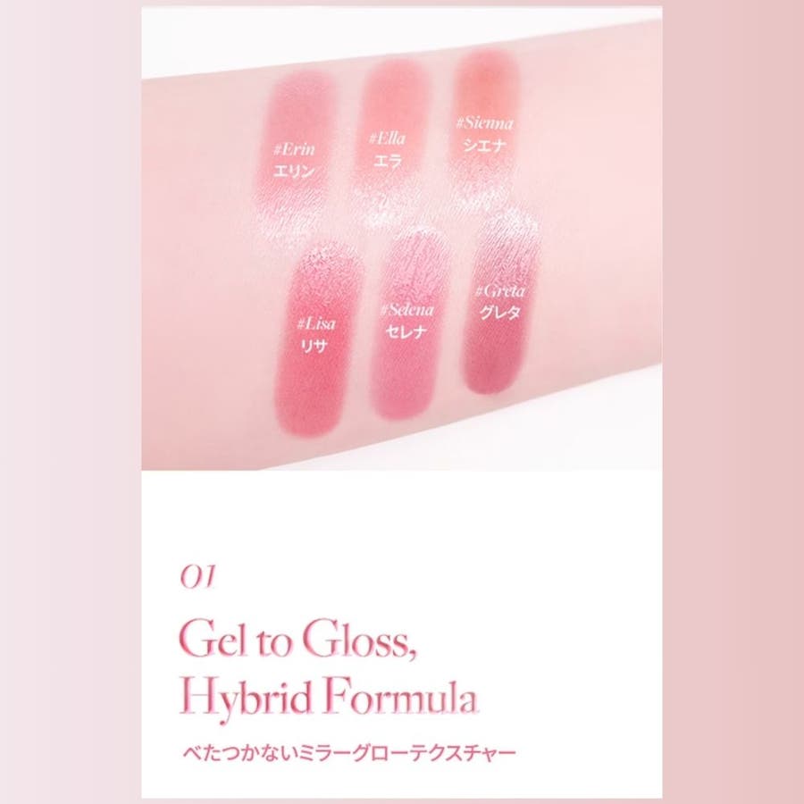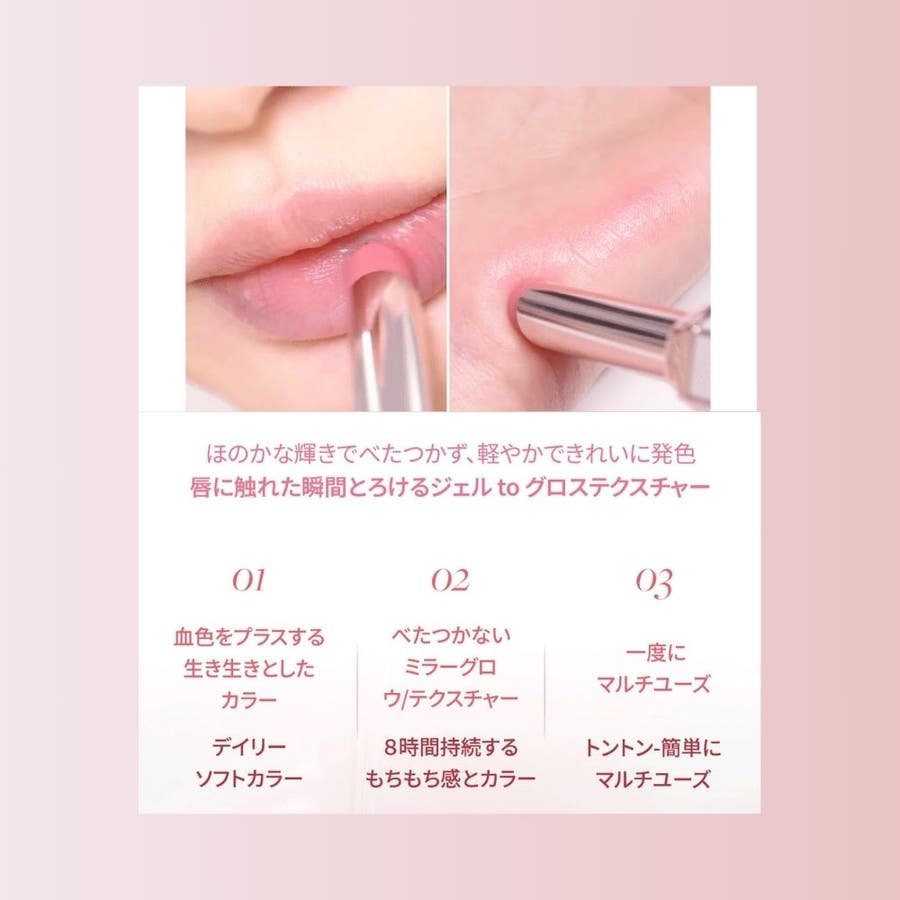 唇に触れた瞬間とろけるジェルtoグロステクスチャー。