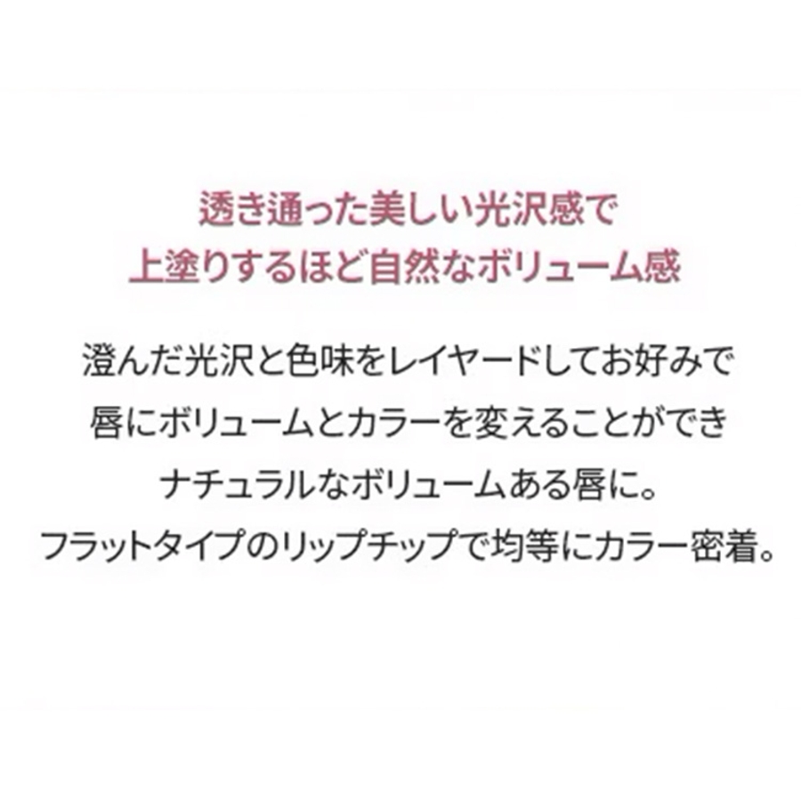 | 素材 | #01 ダイマージリノール酸(フィトステリル/イソステアリル/セチル/ステアリル/ベヘニル)、ヘキサ脂肪酸(C5-9)ジペンタエリスリチルエステルズ、ジフェニルシロキシフェニルトリメチコン、トリイソステアリン酸ポリグリセリル-2、ジカプリン酸ネオペンチルグリコール、セレシン、水添ポリイソブテン、マカデミアナッツ油ポリグリセリル-6エステルズベヘネート、合成ワックス、結晶ワックス、(エチレン/プロピレン)コポリマー、セドロール、シア脂、カカオシードバター、リンゴ酸ジイソステアリル、黄色4号、ブリリアントブルーFCF、トコフェロール、黄色酸化鉄、精製水、ヒアルロン酸、加水分解ヒアルロン酸、加水分解ヒアルロン酸Na、ヒアルロン酸ヒドロキシプロピルトリモニウム、マデカソサイド、ヒアルロン酸Na、グリセリン、プロヴァンスローズフラワーウォーター、メチルプロパンジオール、BG、蔓豆オイル、1,2-ヘキサンジオール、バオバブ果実エキス、ツバキ花エキス、ハイビスカス花エキス、ツルニンジン根エキス、イチジクエキス、メリッサオフィシナリス葉エキス、ザクロエキス、香料、リモネン、リナロール、安息香酸ベンジル、シトラール #02 ダイマージリノール酸(フィトステリル/イソステアリル/セチル/ステアリル/ベヘニル)、ヘキサ脂肪酸(C5-9)ジペンタエリスリチルエステルズ、ジフェニルシロキシフェニルトリメチコン、トリイソステアリン酸ポリグリセリル-2、セレシン、ジカプリン酸ネオペンチルグリコール、水添ポリイソブテン、マカデミアナッツ油ポリグリセリル-6エステルズベヘネート、合成ワックス、結晶ワックス、リンゴ酸ジイソステアリル、二酸化チタン (CI 77891)、(エチレン/プロピレン)コポリマー、赤色酸化鉄、セドロール、赤色227号、シア脂、カカオシードバター、黄色203号、ブリリアントブルーFCF、フェニルトリメチコン、赤色202号、トコフェロール、黒色酸化鉄、精製水、ヒアルロン酸、加水分解ヒアルロン酸、加水分解ヒアルロン酸Na、ヒアルロン酸ヒドロキシプロピルトリモニウム、マデカソサイド、ヒアルロン酸Na、グリセリン、プロヴァンスローズフラワーウォーター、メチルプロパンジオール、BG、蔓豆オイル、1,2-ヘキサンジオール、バオバブ果実エキス、ツバキ花エキス、ハイビスカス花エキス、ツルニンジン根エキス、イチジクエキス、メリッサオフィシナリス葉エキス、ザクロエキス、香料、リモネン、リナロール、安息香酸ベンジル、シトラール #03 ダイマージリノール酸(フィトステリル/イソステアリル/セチル/ステアリル/ベヘニル)、ヘキサ脂肪酸(C5-9)ジペンタエリスリチルエステルズ、ジフェニルシロキシフェニルトリメチコン、トリイソステアリン酸ポリグリセリル-2、セレシン、ジカプリン酸ネオペンチルグリコール、水添ポリイソブテン、マカデミアナッツ油ポリグリセリル-6エステルズベヘネート、合成ワックス、結晶ワックス、(エチレン/プロピレン)コポリマー、リンゴ酸ジイソステアリル、赤色酸化鉄、セドロール、赤色104号(1)、二酸化チタン (CI 77891)、赤色202号、赤色201号、シア脂、カカオシードバター、ブリリアントブルーFCF、トコフェロール、黒色酸化鉄、精製水、ヒアルロン酸、加水分解ヒアルロン酸、加水分解ヒアルロン酸Na、ヒアルロン酸ヒドロキシプロピルトリモニウム、マデカソサイド、ヒアルロン酸Na、グリセリン、プロヴァンスローズフラワーウォーター、メチルプロパンジオール、BG、蔓豆オイル、1,2-ヘキサンジオール、バオバブ果実エキス、ツバキ花エキス、ハイビスカス花エキス、ツルニンジン根エキス、イチジクエキス、メリッサオフィシナリス葉エキス、ザクロエキス、香料、リモネン、リナロール、安息香酸ベンジル、シトラール #04 ダイマージリノール酸(フィトステリル/イソステアリル/セチル/ステアリル/ベヘニル)、ヘキサ脂肪酸(C5-9)ジペンタエリスリチルエステルズ、ジフェニルシロキシフェニルトリメチコン、トリイソステアリン酸ポリグリセリル-2、セレシン、ジカプリン酸ネオペンチルグリコール、水添ポリイソブテン、マカデミアナッツ油ポリグリセリル-6エステルズベヘネート、合成ワックス、結晶ワックス、リンゴ酸ジイソステアリル、(エチレン/プロピレン)コポリマー、二酸化チタン (CI 77891)、黄色酸化鉄、セドロール、赤色酸化鉄、黄色4号、シア脂、カカオシードバター、赤色202号、赤色201号、トコフェロール、精製水、黒色酸化鉄、ヒアルロン酸、加水分解ヒアルロン酸、加水分解ヒアルロン酸Na、ヒアルロン酸ヒドロキシプロピルトリモニウム、マデカソサイド、ヒアルロン酸Na、グリセリン、プロヴァンスローズフラワーウォーター、メチルプロパンジオール、BG、蔓豆オイル、1,2-ヘキサンジオール、バオバブ果実エキス、ツバキ花エキス、ハイビスカス花エキス、ツルニンジン根エキス、イチジクエキス、メリッサオフィシナリス葉エキス、ザクロエキス、香料、リモネン、リ