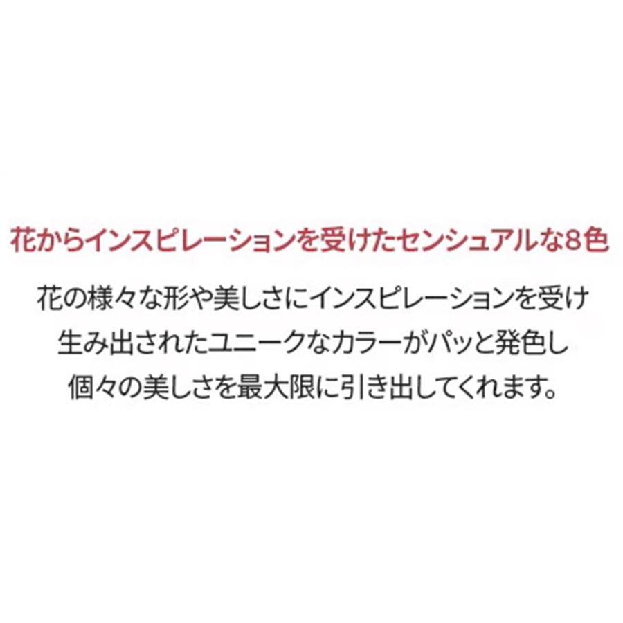| カラー | 01 Young / 02 Garden / 03 Preserved / 04 Earthy / 05 Rough / 06 New Plastic / 07 Wild / 08 Sunshine |