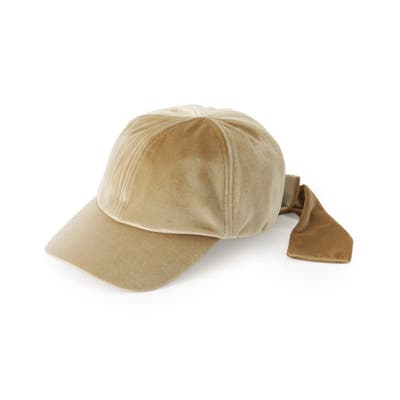 秋冬らしい光沢のあるベロア生地を使用したリボンキャップです。
