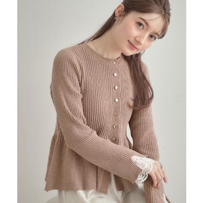 【袖口レース・着映え】短毛モールペプラム カーデ