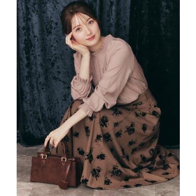 【美シルエット・通勤】フロッキーフラワープリントスカート