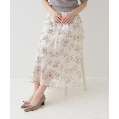 丸みのあるラインフラワーのフロッキーパターンが可愛いオーガンジースカート。