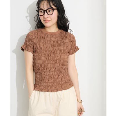 プレーンなワンカラーながら全体に施したシャーリングディテールが存在感を上げるおしゃれな一枚です。