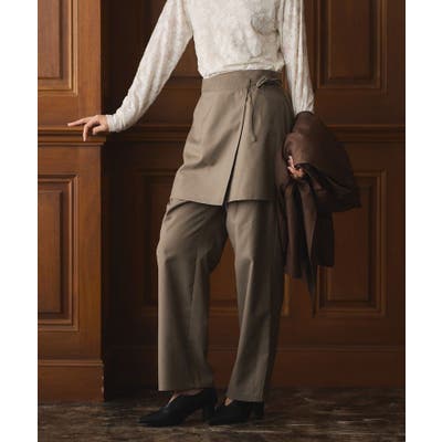ラップスカートを重ねたようなデザインが特徴のパンツは、履くだけでレイヤードスタイルが決まる便利なアイテム。