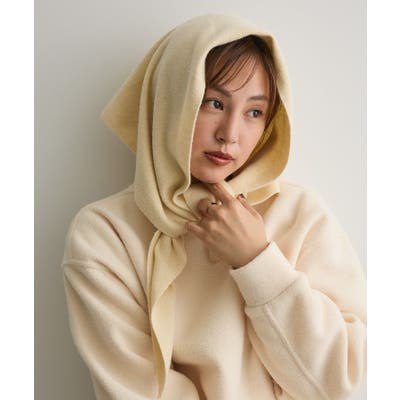 ポリエステル・ナイロン・ウール混の軽やかなニット素材を使用したフードスカーフ。
