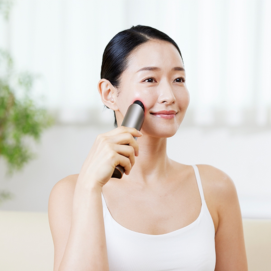 ヘッドから同時に出力されるLED・EMS・ラジオ波(RF)でお肌をエイジングケア*1。