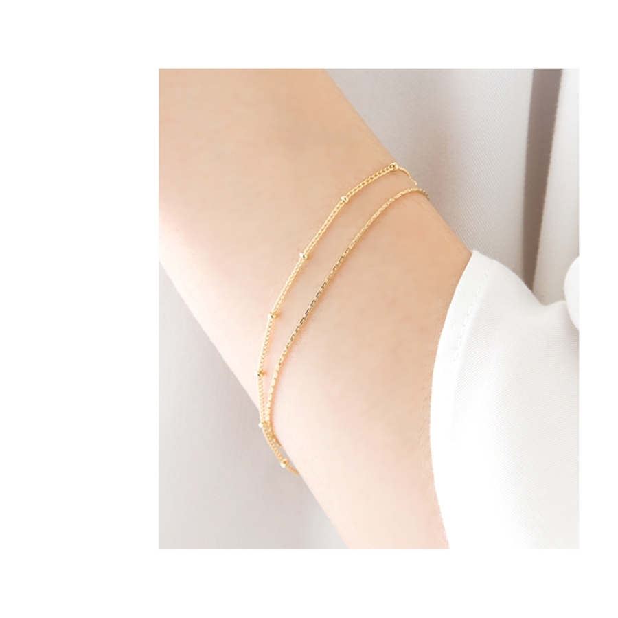 華奢なラインなので、ひとつ使いでは上品に、 重ね付けでは他のブレスレット・バングルと合わせやすいアイテムです。