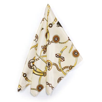 シック、キレイ色が大人上品な大判スカーフ。クラシカルなデザインがこなれた印象を演出。首元はもちろん、手首やバッグにも使えて様々なスタイルに華やかさとアクセントを加えてくれる万能なアイテムです◎
