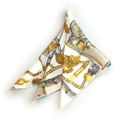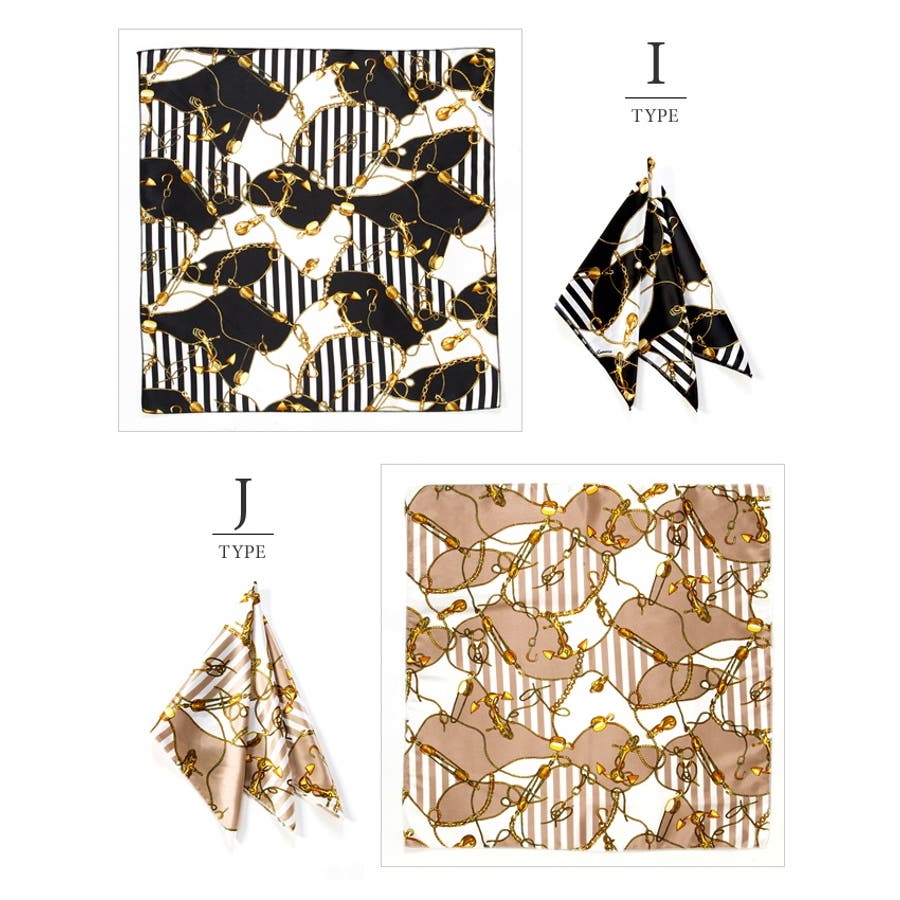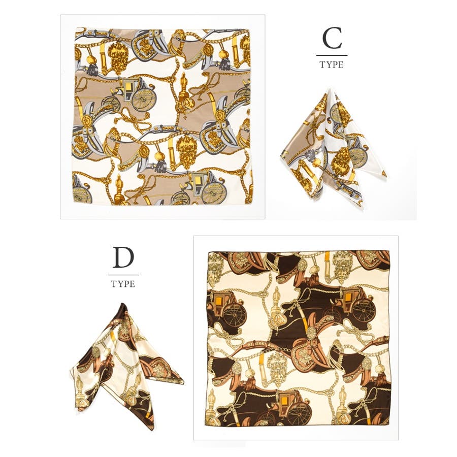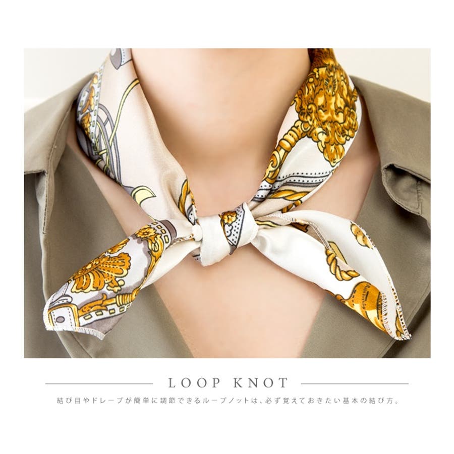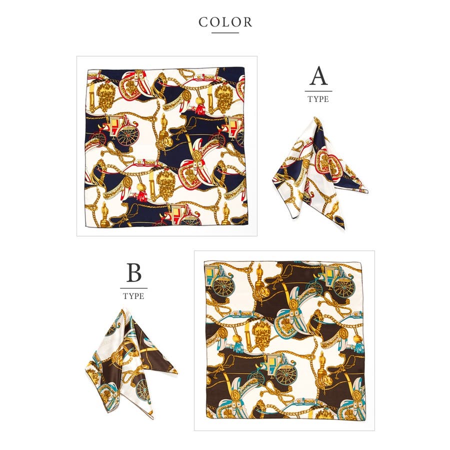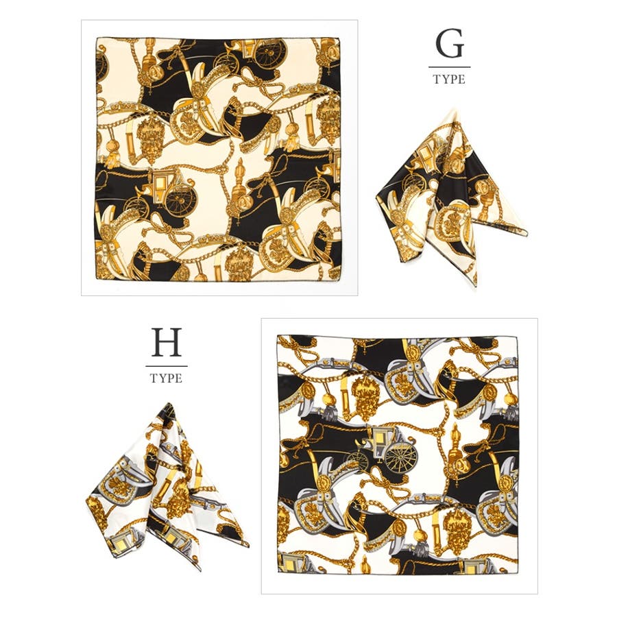 綺麗な柄に満足。広げると正方形で長過ぎずカバンのアクセントとして購入。どの色のカバンにも合わせやすそう。