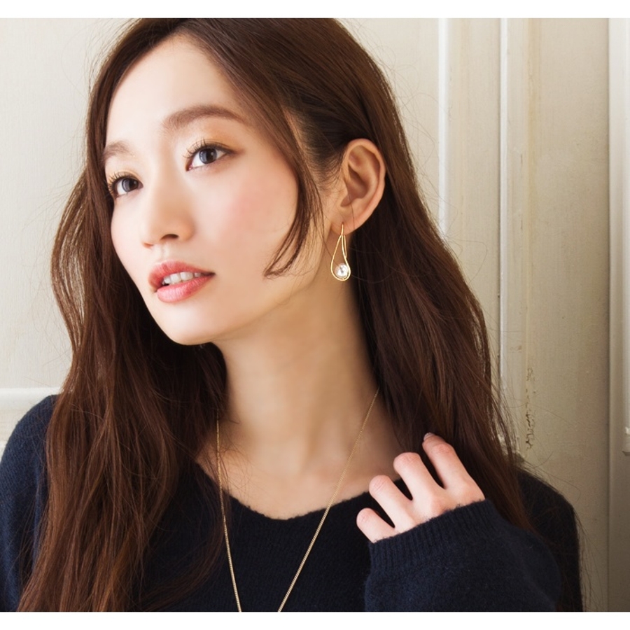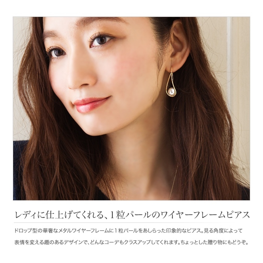 ピアス 一粒パール ワイヤーフレーム