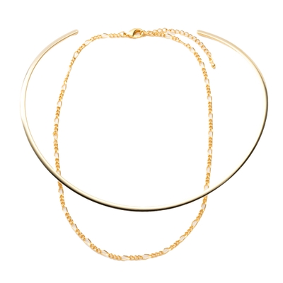 今っぽいデザインのチェーンとメタルチョーカーをセットにした3WAYアイテム。セットで付けるのはもちろん、単品使いやお持ちのネックレスと合わせるなど様々なアレンジが楽しめます。
