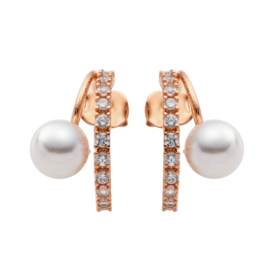 一粒パールと煌めくビジューラインのレイヤード風フープピアス/イヤリング。繊細なデザインが耳元を上品に彩り華やかな雰囲気をプラスします。小粒ビジューの派手過ぎない煌めきが大人コーデのアクセントにピッタリなひと品。