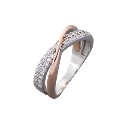 煌めくビジューラインとミックスカラーのクロスデザインリング。立体感あるデザインとをふんだんに敷き詰めた華やかなビジューラインが手元を洗練された印象に格上げするひと品。どんなコーデともマッチするミックスカラーはひとつあると便利です。低アレルギーのニッケルフリー素材を使用しているので、長時間の着用も安心です。