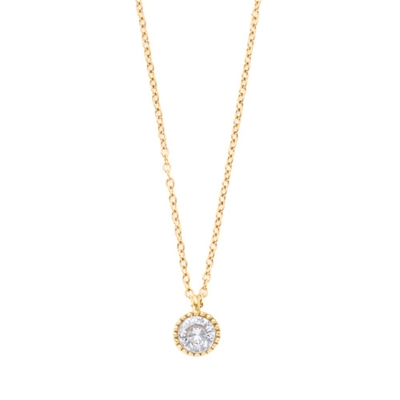 繊細なミル打ちデザインに囲まれた一粒ビジューが上品に煌めきます。飽きのこないシンプルなネックレスは一つ持っておけばヘビロテ間違いなしのアイテムです。
