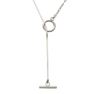 Y字シルエットはもちろん、ロングや重ねづけ風の2連スタイルにも使える3WAY仕様。マンテルがアクセントになって、シンプルコーデにも映える主役級アイテムです。