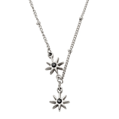 ブラックビジュー煌めく星モチーフと、ステーションボールチェーンのちょっぴりスパイスの効いたデザイン。シンプルコーデにアクセントを添える程よい存在感です。