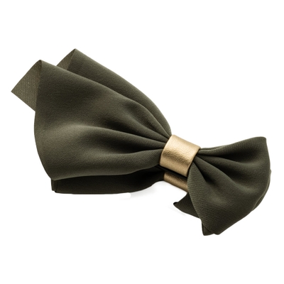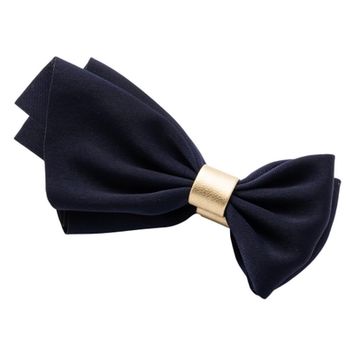 シンプルリボンにゴールドレザーをワンポイントであしらったデザインは、甘くなり過ぎず大人っぽい印象に。程よい存在感で品のある女性らしい後ろ姿に魅せてくれます。