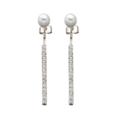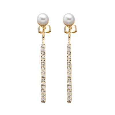一粒パールとビジューバーが大人上品なピアス/イヤリング。繊細な煌めきが派手過ぎず程よい華やかさをプラスします。様々なシーンにマッチしてコーデをクラスアップしてくれるアイテムです◎